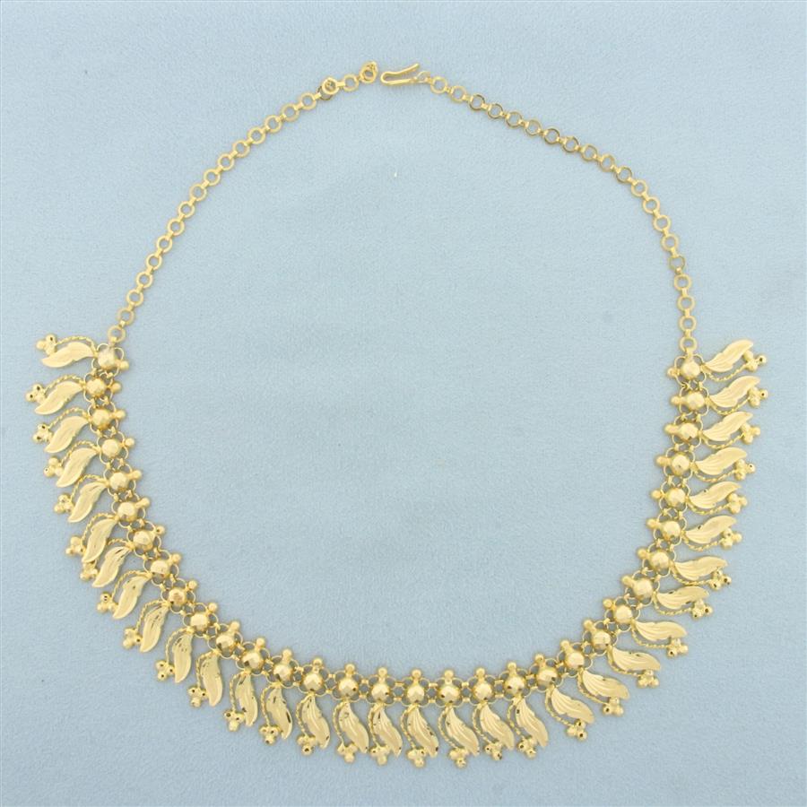 Diamond Cut Leaf Design Necklace in 22k Yellow Gold