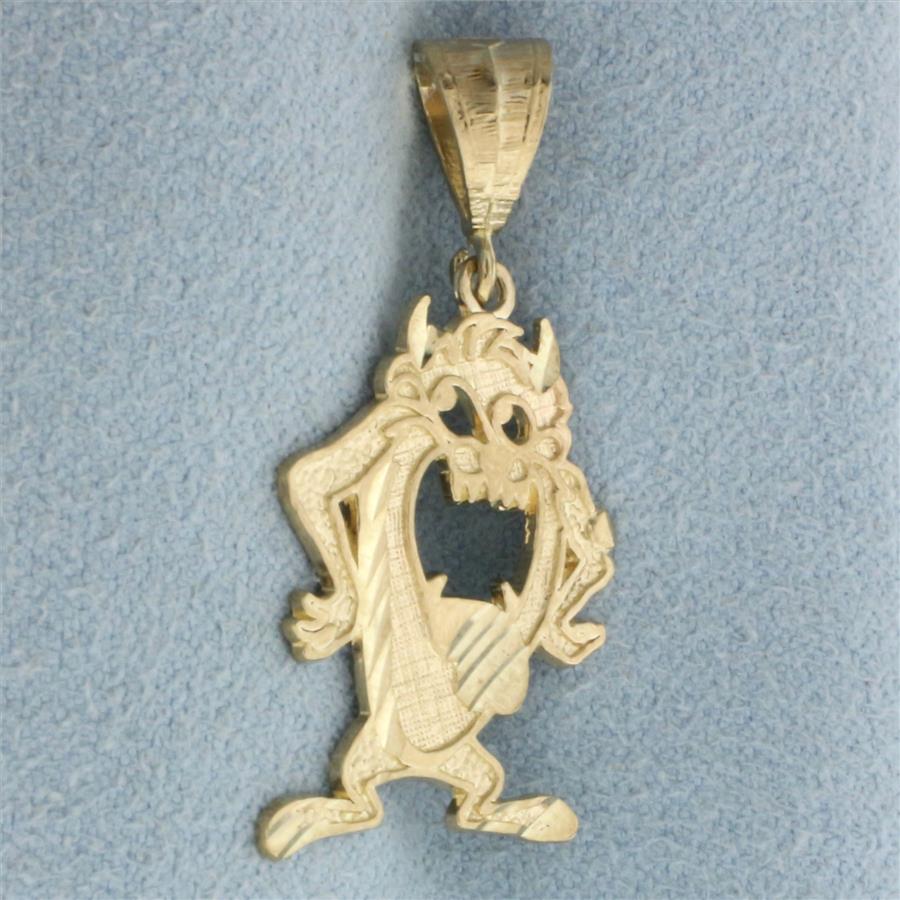 Diamond Cut Tasmanian Devil Pendant in 14k Yellow Gold