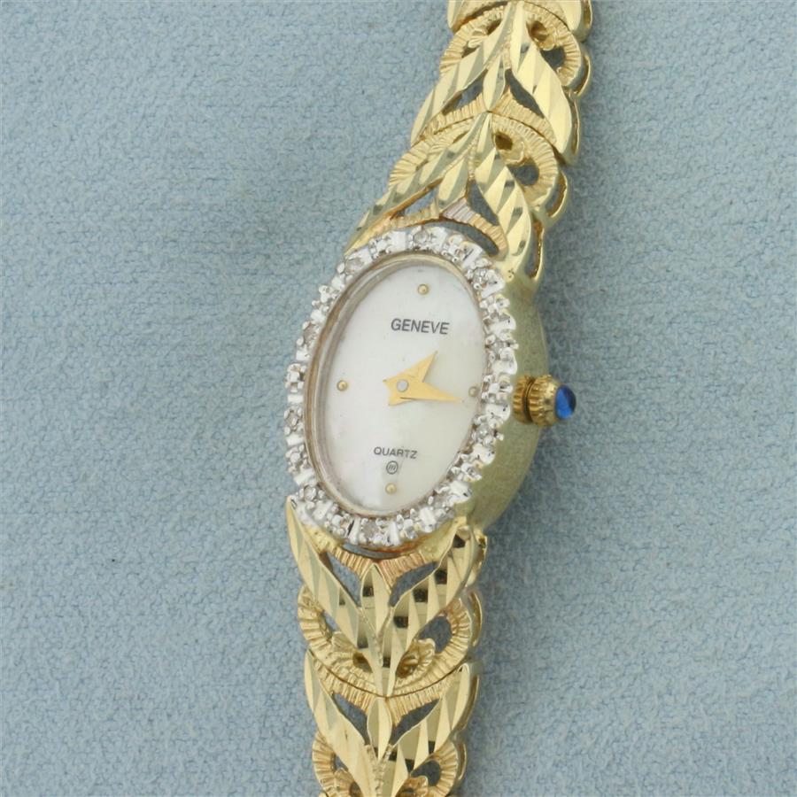Diamond Geneve Watch in 14k Solid Yellow Gold