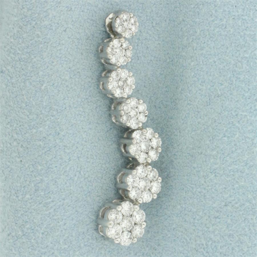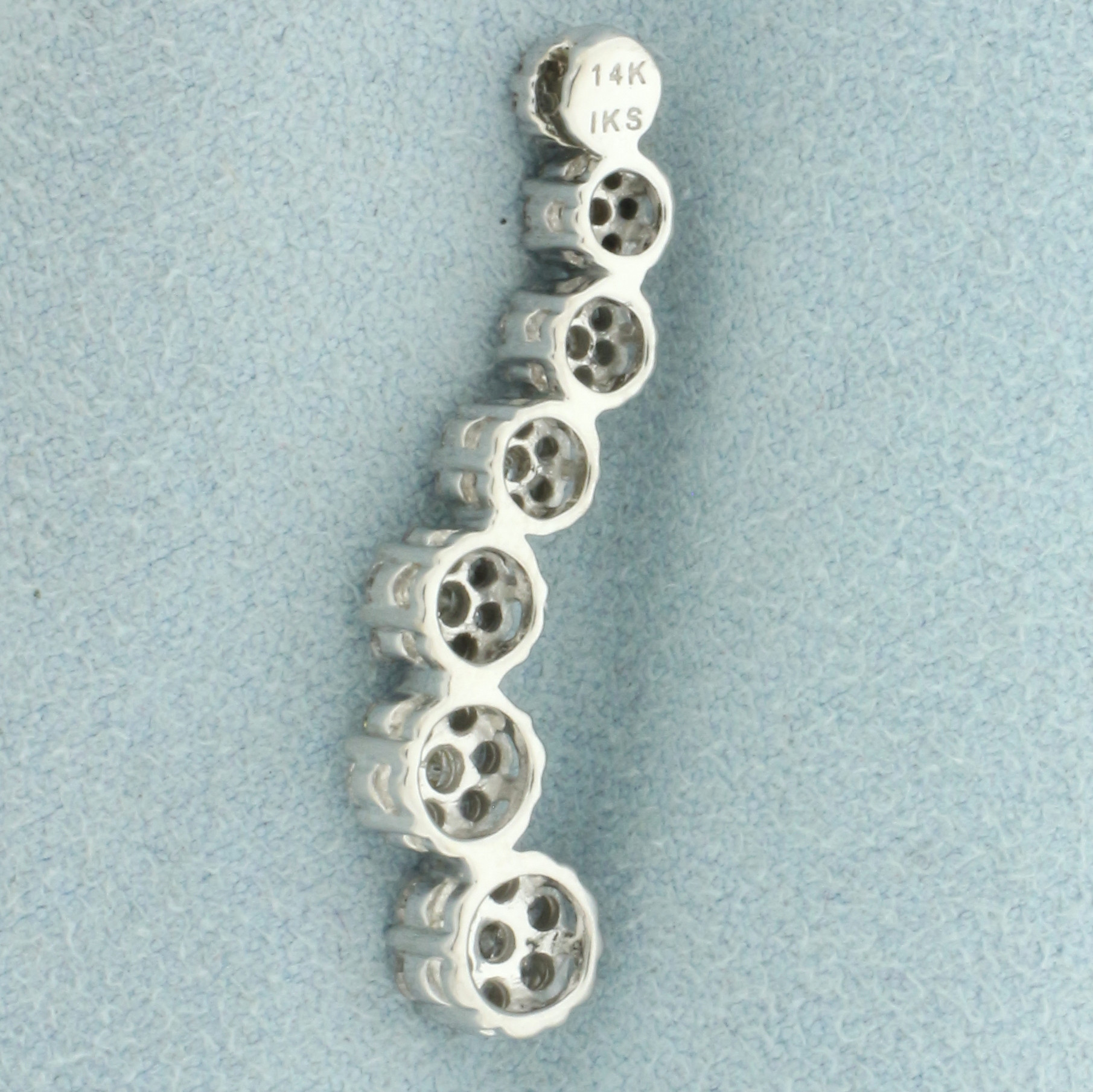In 14k white gold. Contains 49 high quality diamonds, ranging from 1/2pt to .0c3ct each, 1ct TW, H color/I1 clarity. 1 1/4 inches long and 1/4 inch wide. 2.8g.