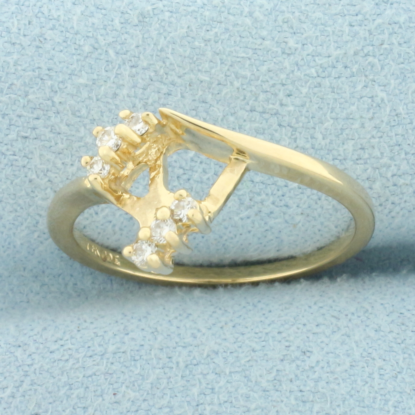 In 14k Yellow Gold. Contains six high quality .01ct diamonds, SI clarity/H color. 10mm wide at top. Meant to fit around solitaire diamond engagement ring to give new look. Size 7. 2.1g.