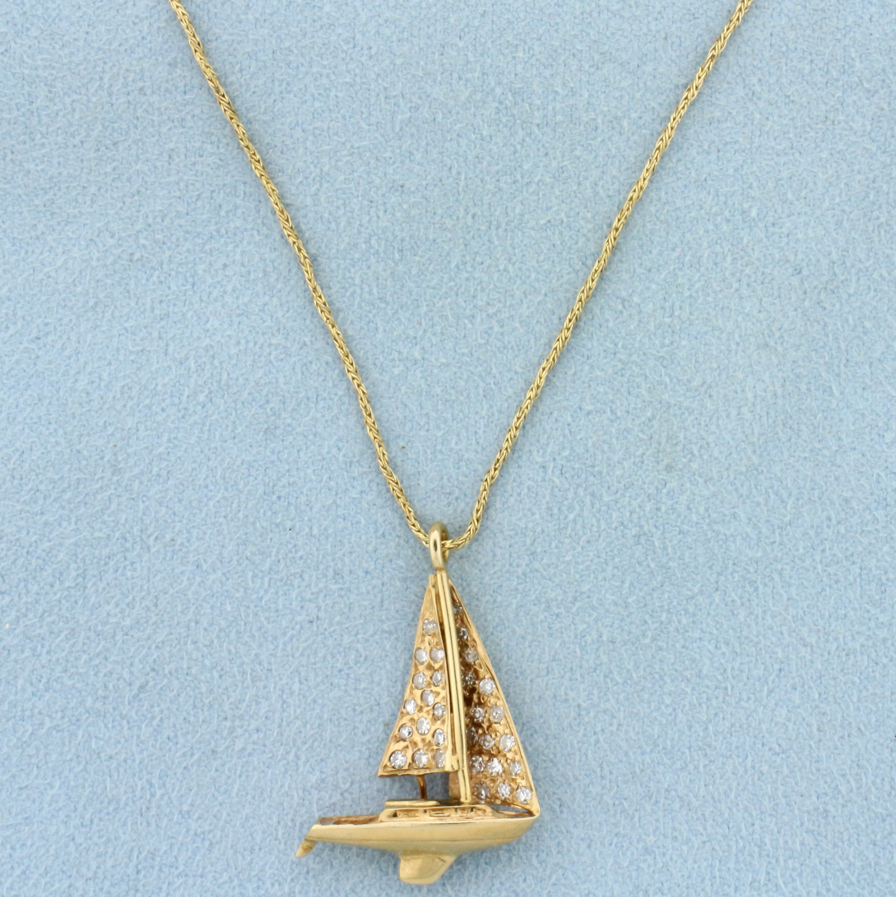 Diamond Sailboat Pendant on Foxtail Link Chain in 14k yellow gold
