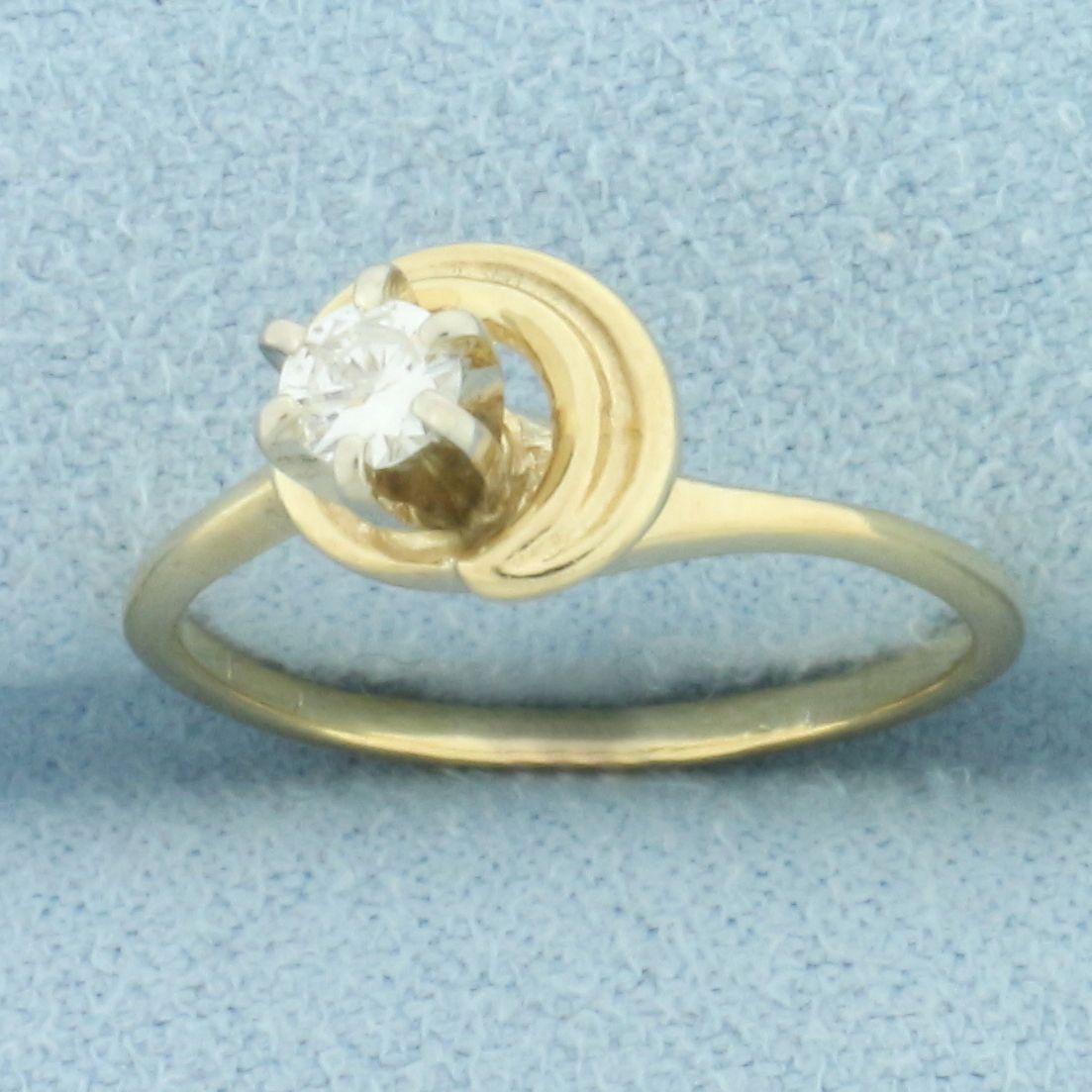 Diamond Solitaire Swirl Design Ring in 14k Yellow Gold