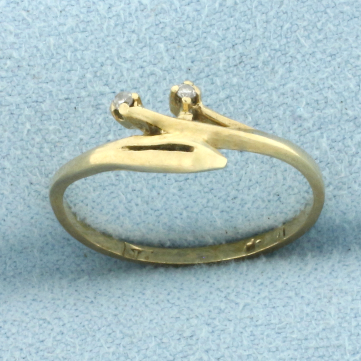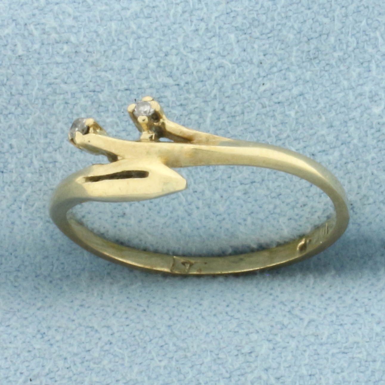 In 10k Yellow Gold. Contains two high quality .01ct diamonds. 6.7mm wide at center. Size 6.25. 1.2g.