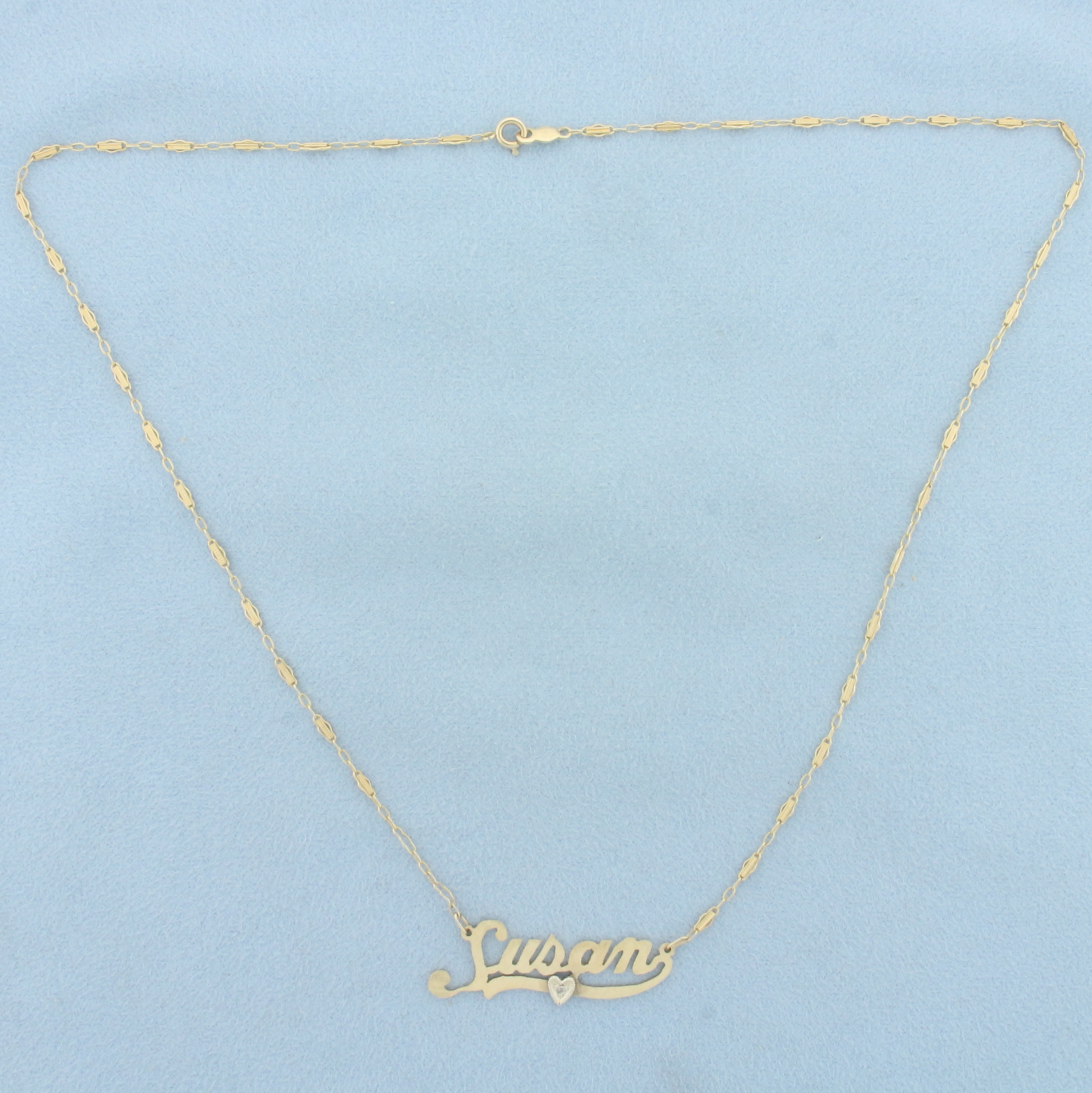 Diamond Susan Nameplate Necklace in 14k Yellow Gold
