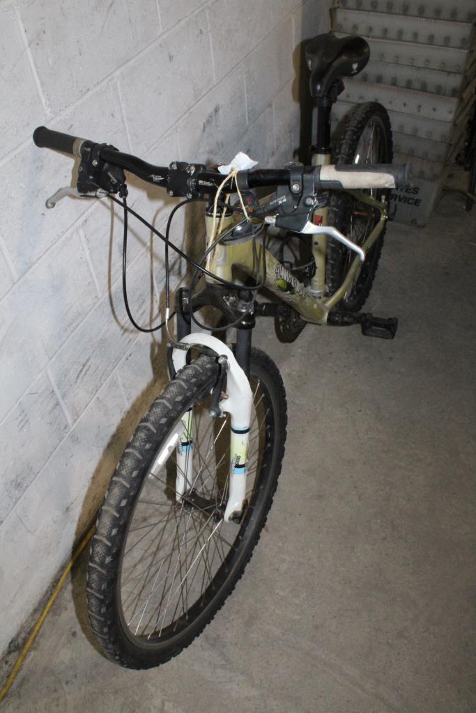 Get a great deal with this online auction presented by PropertyRoom.com on behalf of a law enforcement or public agency client. Frame Size: 17.5" Frame Material: AluminumSpeeds: 21Tire Size: 26 x 1.95Brakes: Sram v-brakesSuspension: FrontDerailleurs: ShimanoShift Type: Trigger shiftFrame Color: GreenPhysical Condition: Good, with scratches, scuffs, and dirtThis bike has not been evaluated by a bicycle mechanic. Item may not have original parts, parts included may be damaged and non-functional. Parts may need to be adjusted, repaired or replaced. Some parts may be missing. Assembly Required: Bikes picked up at Will-Call are fully assembled but bikes that are shipped will require some assembly. Condition: Good