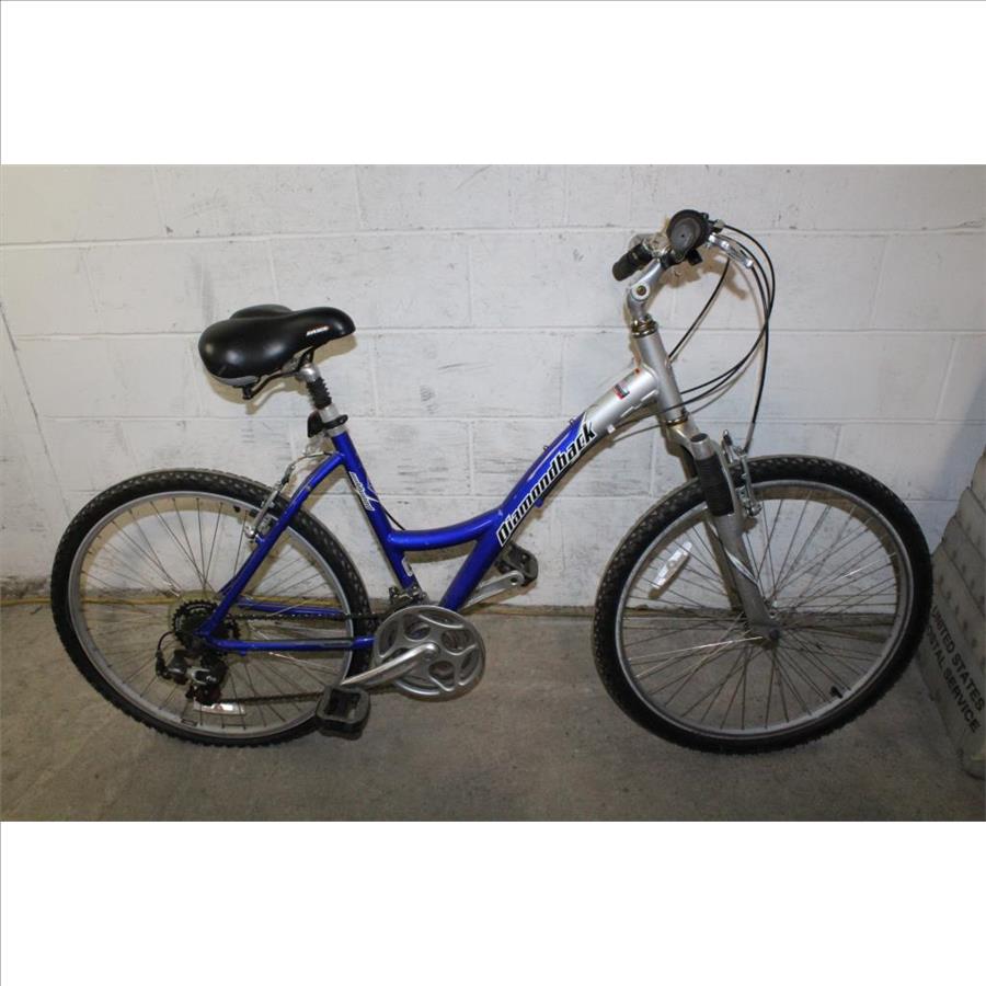 Get a great deal with this online auction presented by PropertyRoom.com on behalf of a law enforcement or public agency client. Frame Size: 18" Frame Material: AluminumSpeeds: 21Tire Size: 26 x 1.95Brakes: Tektro v-brakesSuspension: FrontDerailleurs: ShimanoShift Type: Grip shiftFrame Color: Blue, silverPhysical Condition: Good, with scratches, scuffs, and dirtThis bike has not been evaluated by a bicycle mechanic. Item may not have original parts, parts included may be damaged and non-functional. Parts may need to be adjusted, repaired or replaced. Some parts may be missing. Assembly Required: Bikes picked up at Will-Call are fully assembled but bikes that are shipped will require some assembly. Condition: Good