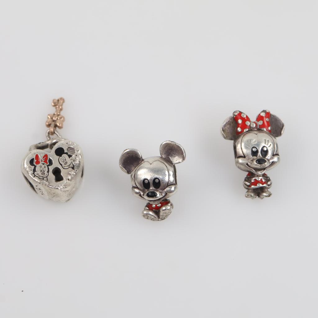 Disney Pandora Sterling Silver Charms, 3 Pieces