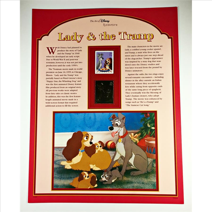 Disney Romance*22K Gold Foil Stamp of Lady & The Tramp + Original 39c Postage Stamp on 10" x 13" Story Board