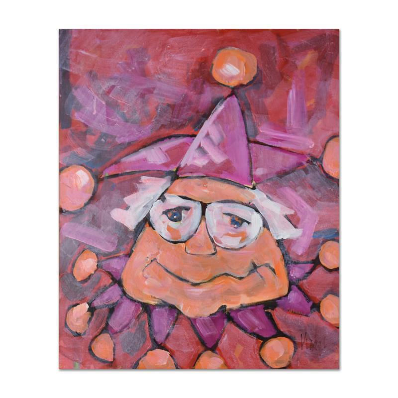 "Kracke Klown" is an original acrylic painting on canvas board by Donald Kracke (1931-2017), hand signed by the artist. Includes Certificate of Authenticity. Measures approx. 20" x 24" (image).