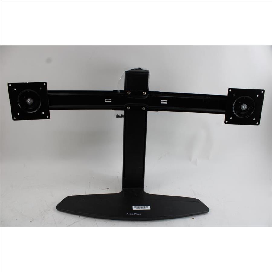 - Size: Ergotron stand goes up to24" , Lift 5", Pan 360, Weight 15.87lbs, 2LCD displays, 34lbs Max load weight, VESA mounting interface 100 x 100mm, 75x 75mm, 2 sliding brackets, crossbar.
