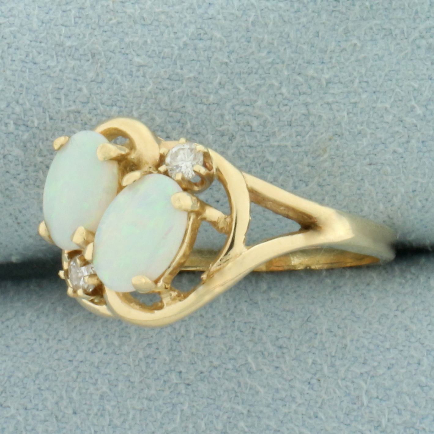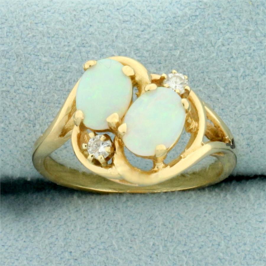 Double Opal and Diamond Ring in 14k Yellow Gold