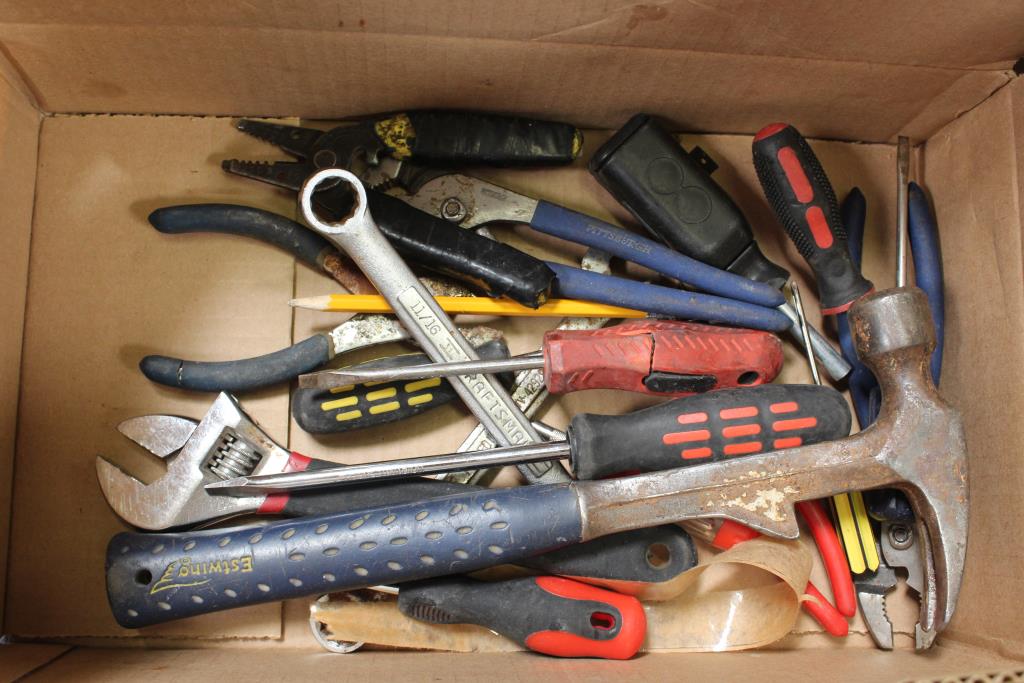 - Also Includes 10+ Assorted Hand Tools & Battery For Drill (battery may need to be charged/charger not included)