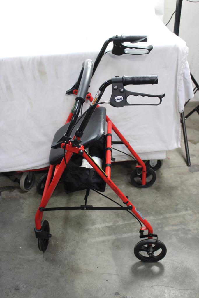 Drive, Walker With Fold Up Removable Back Support, Red