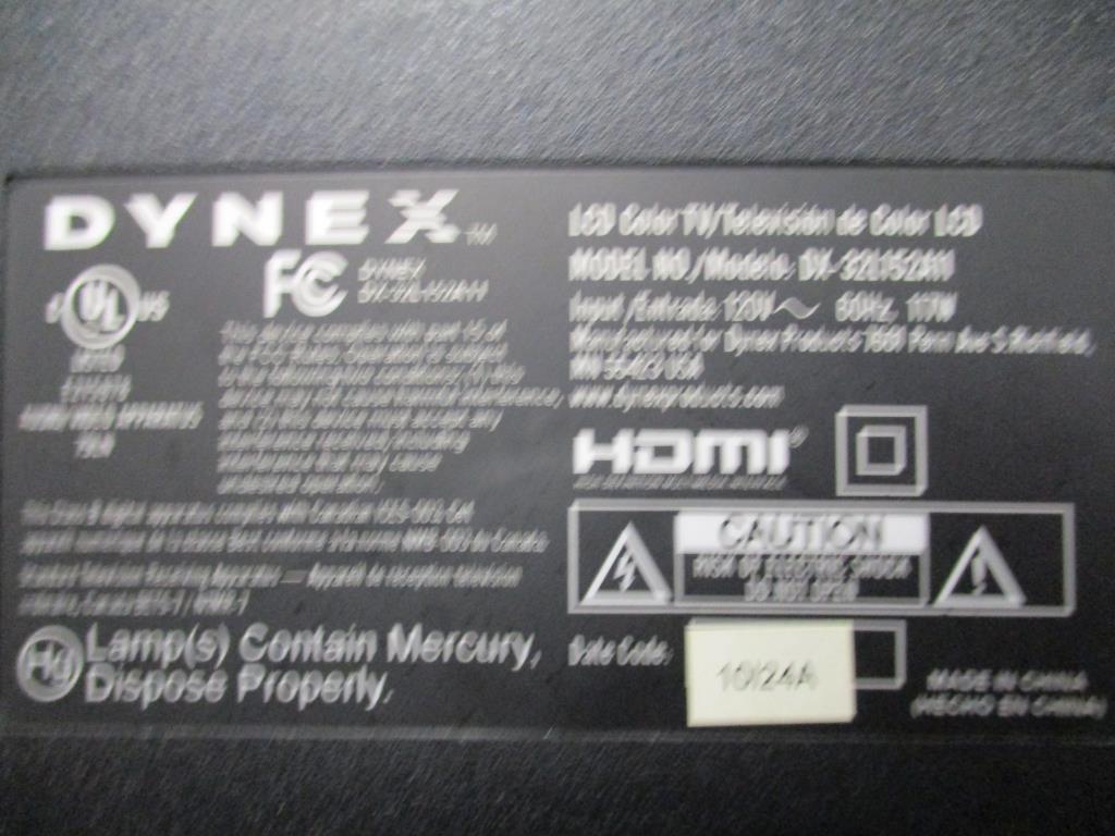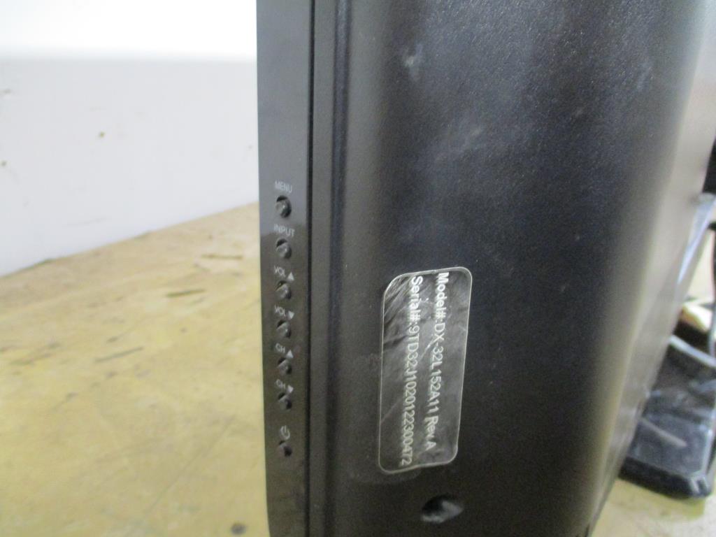 Get a great deal with this online auction presented by PropertyRoom.com on behalf of a law enforcement or public agency client. Model: DX-32L152A11 Screen Size: 32" Date of Manufacture: unknown Measurements: height 23", width 30", length 8" Base: yes Remote Control: no Power Cord: yes Physical Condition: good condition Testing Results: Item was tested for power only and it powered on, displayed menu. Input and output ports were not tested and may be non-functional. Item is sold "As Is".