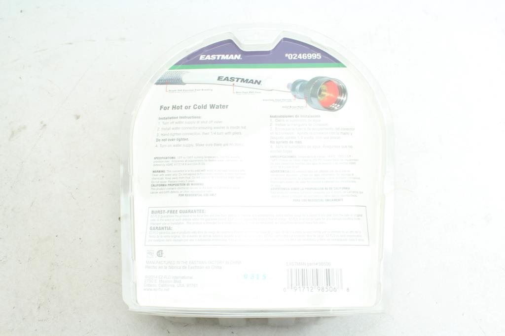 Get a great deal with this online auction for a washing machine hose presented by Property Room on behalf of a law enforcement or public agency client. - Brand/Model: Eastman 98506 5FT SS Washing Machine Fill Hose
