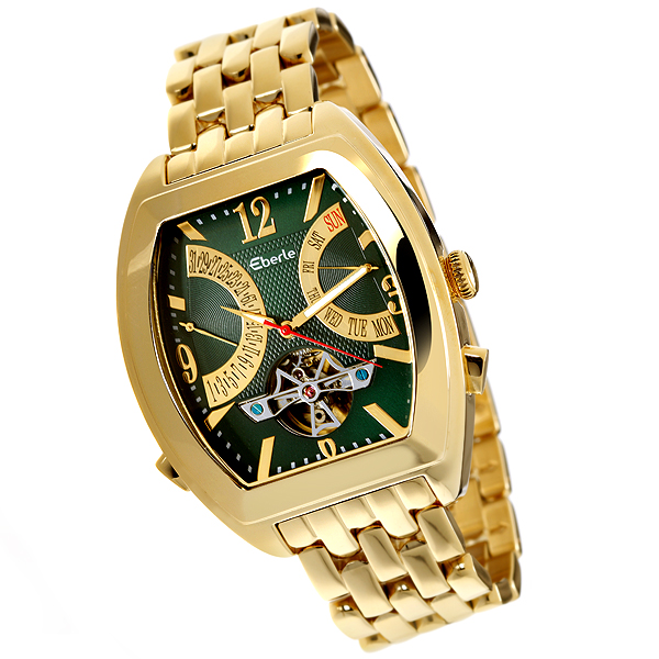 Eberle Gents Automatic Multi-Function Gold Tone/Green-Gold Dial