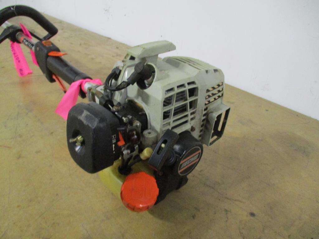- Item info: gas powered, pull cord start, kill switch, trigger throttle on hand, handle for stability, side bar, line guard.