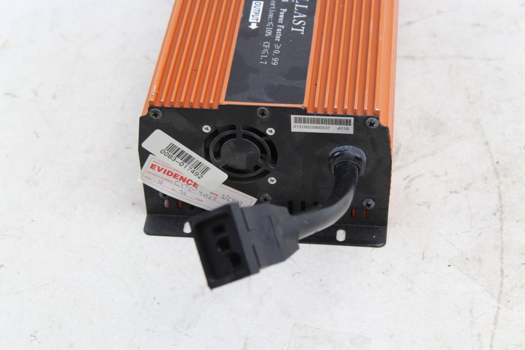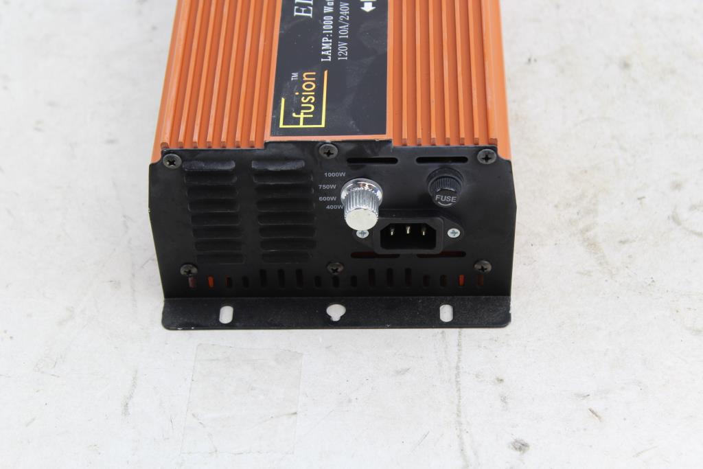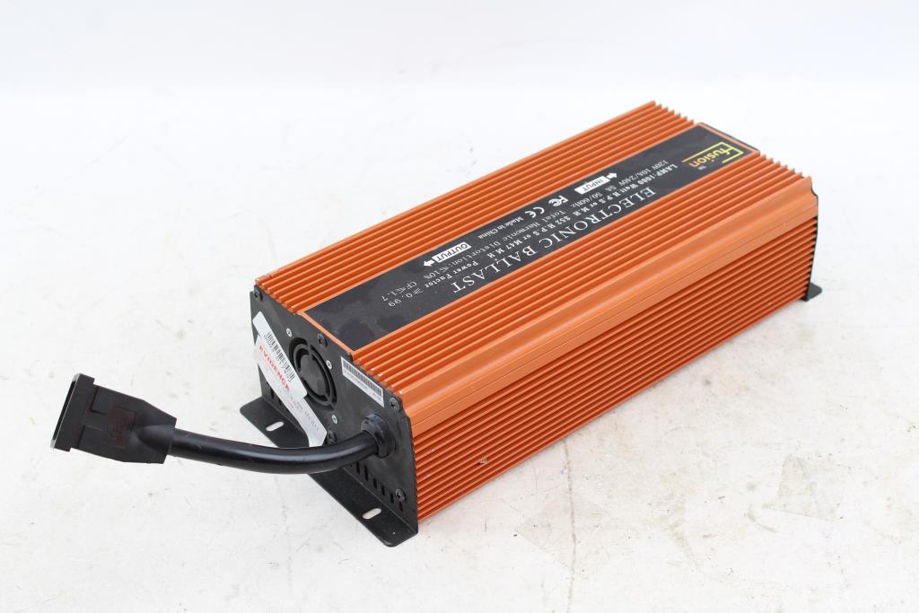 Get a great deal with this online auction for a ballast presented by Property Room on behalf of a law enforcement or public agency client. Model: E-Fusion 1000W Electronic BallastBallast Watts: 1000W Type: Metal Halide or High Pressure Sodium [120/240V] / [50/60Hz] / [10A/5A] Measurements: 6 1/4"w x 13 1/8"d x 3 7/8"h Cosmetic Condition: Good to fair condition, visibly worn, very dirty, has scratches, scuffs, and scrapes. Has sticker(s) on the item, may be difficult to remove. Mounting brackets may be bent / warped. Power Cord Condition: Not Cut - Testing Results: Item is untested due to lack of proper testing equipment.