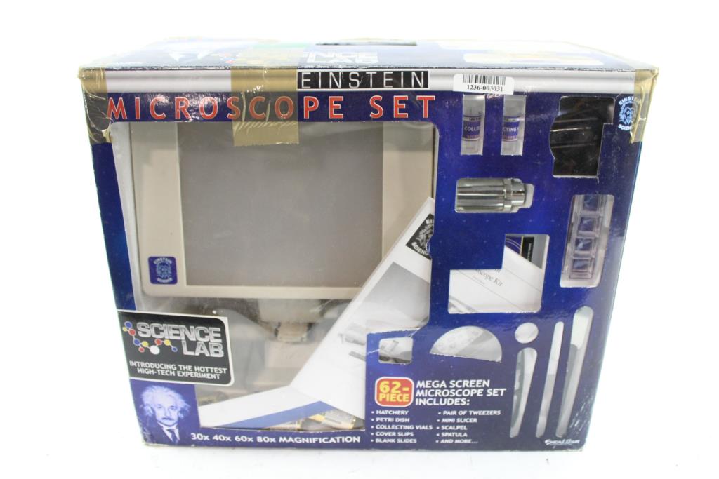 Get a great deal with this online auction for a microscope set presented by Property Room on behalf of a law enforcement or public agency client. - Brands: Einstein