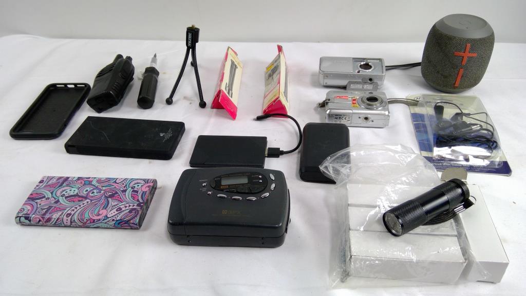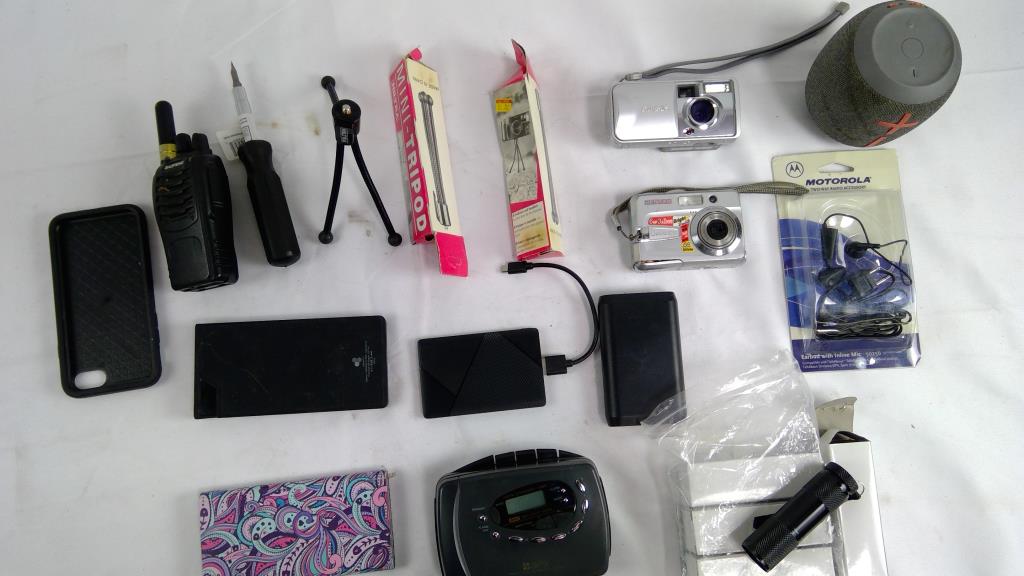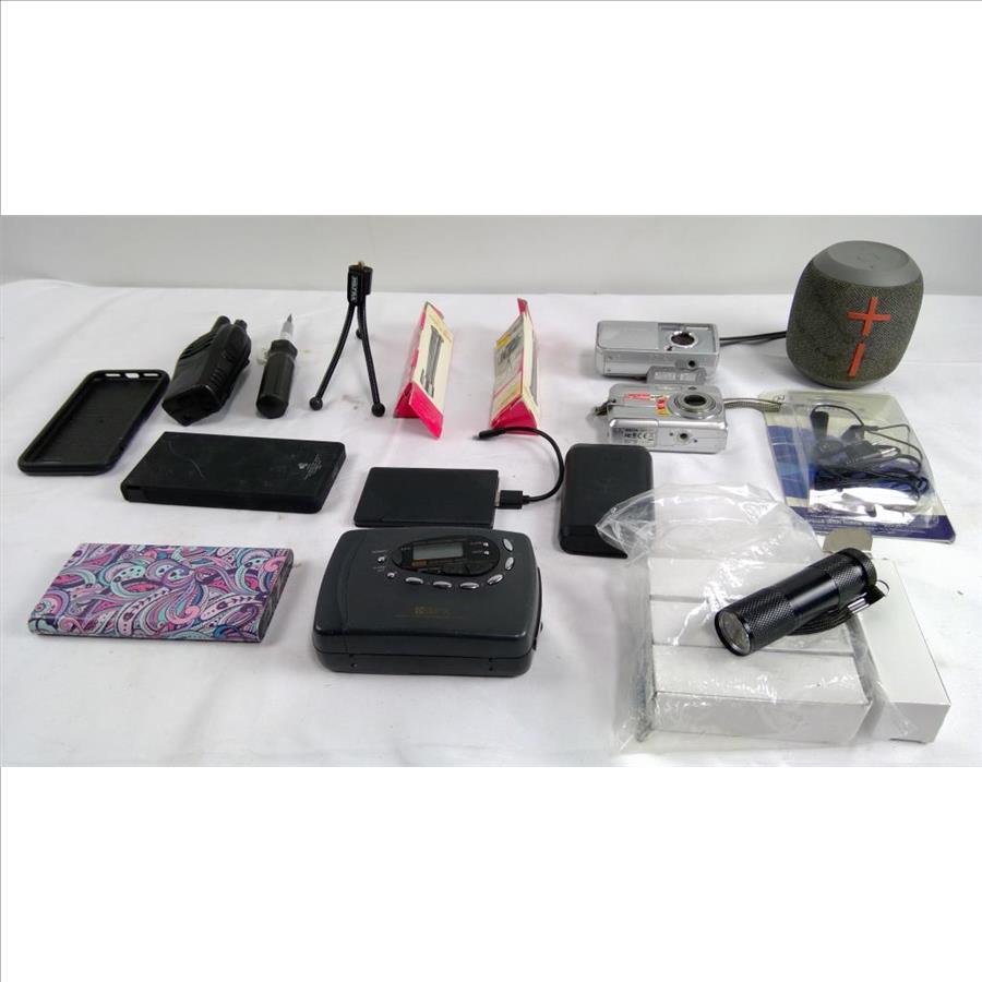 - Lot includes: battery packs, bluetooth speaker, digital cameras, and more