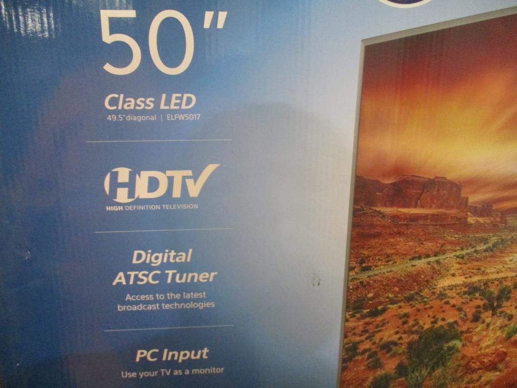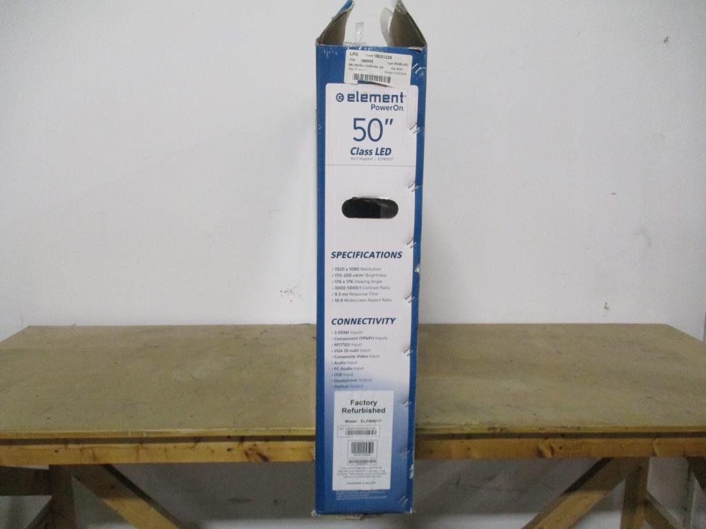 Get a great deal with this online auction presented by PropertyRoom.com on behalf of a law enforcement or public agency client. Model: ELFW5017 Screen Size: 50" Date of Manufacture: unknown Measurements:N/A Base: yes Remote Control: yes Power Cord: yes Manuals: yes Physical Condition: Like new (Refurbished) Testing Results: Item was tested for power only and it powered on, displayed menu. Input and output ports were not tested and may be non-functional. Item is sold "As Is".