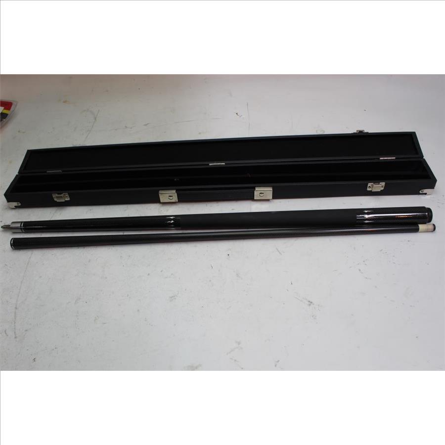 - Cosmetic Condition: Very good, light to no visible wear on pool cue, missing locking hinge on case