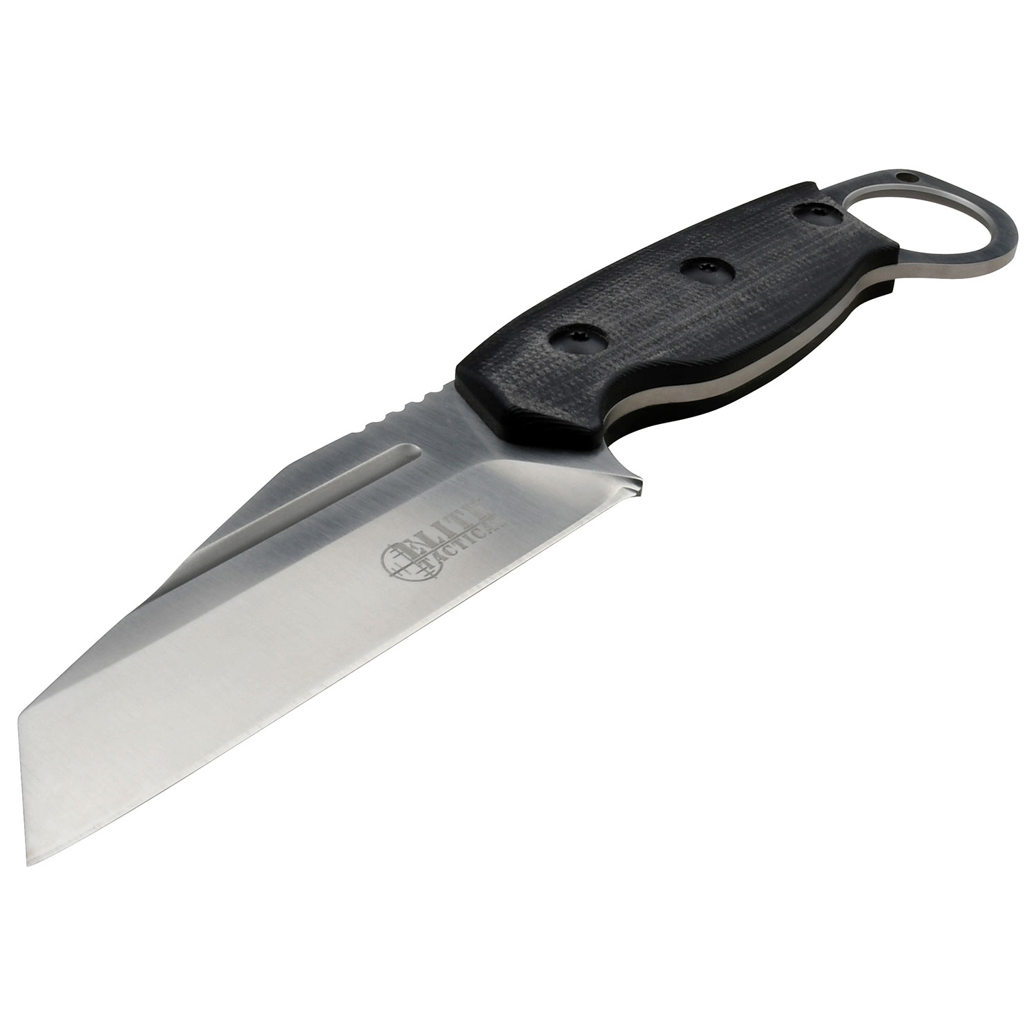 SPECIAL FEATURES: Satin Finish Stainless Steel Wharncliffe Blade, Full Tang Construction, Black Micarta Handle with Finger Ring. Includes Kydex Sheath with Multi-Direction Clip for Easy and Safe Carry. Comes in Clam Shell Packaging.