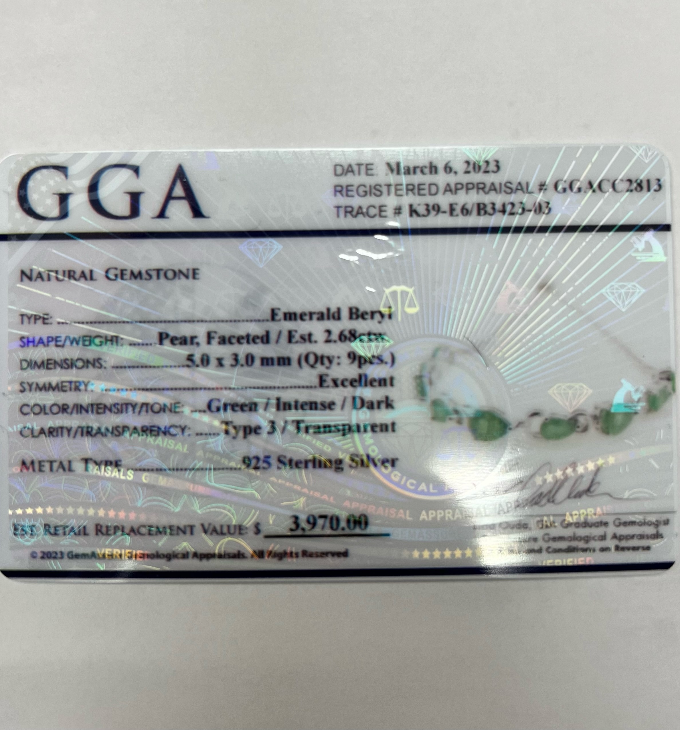 STUNNING EMERALD BRACELET SET IN STERLING SILVER