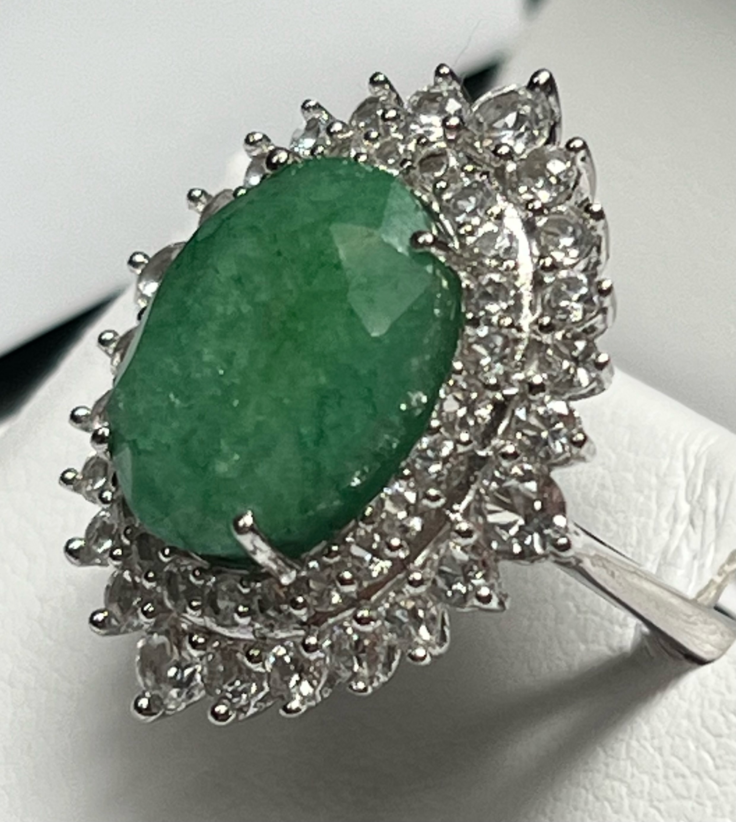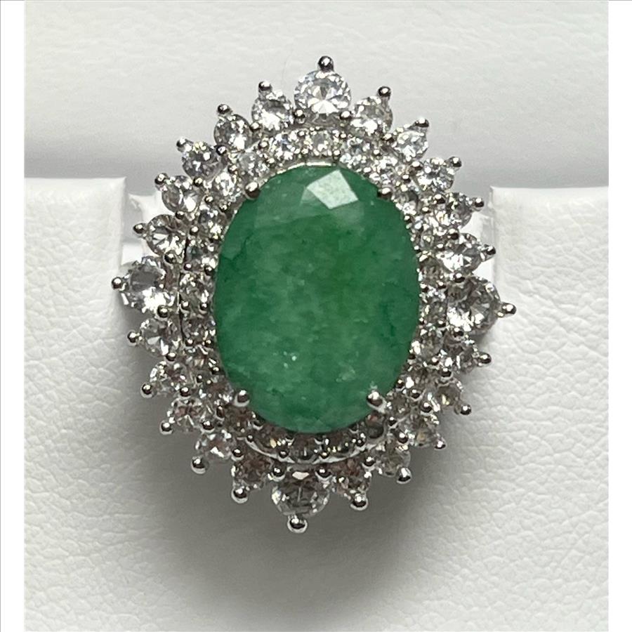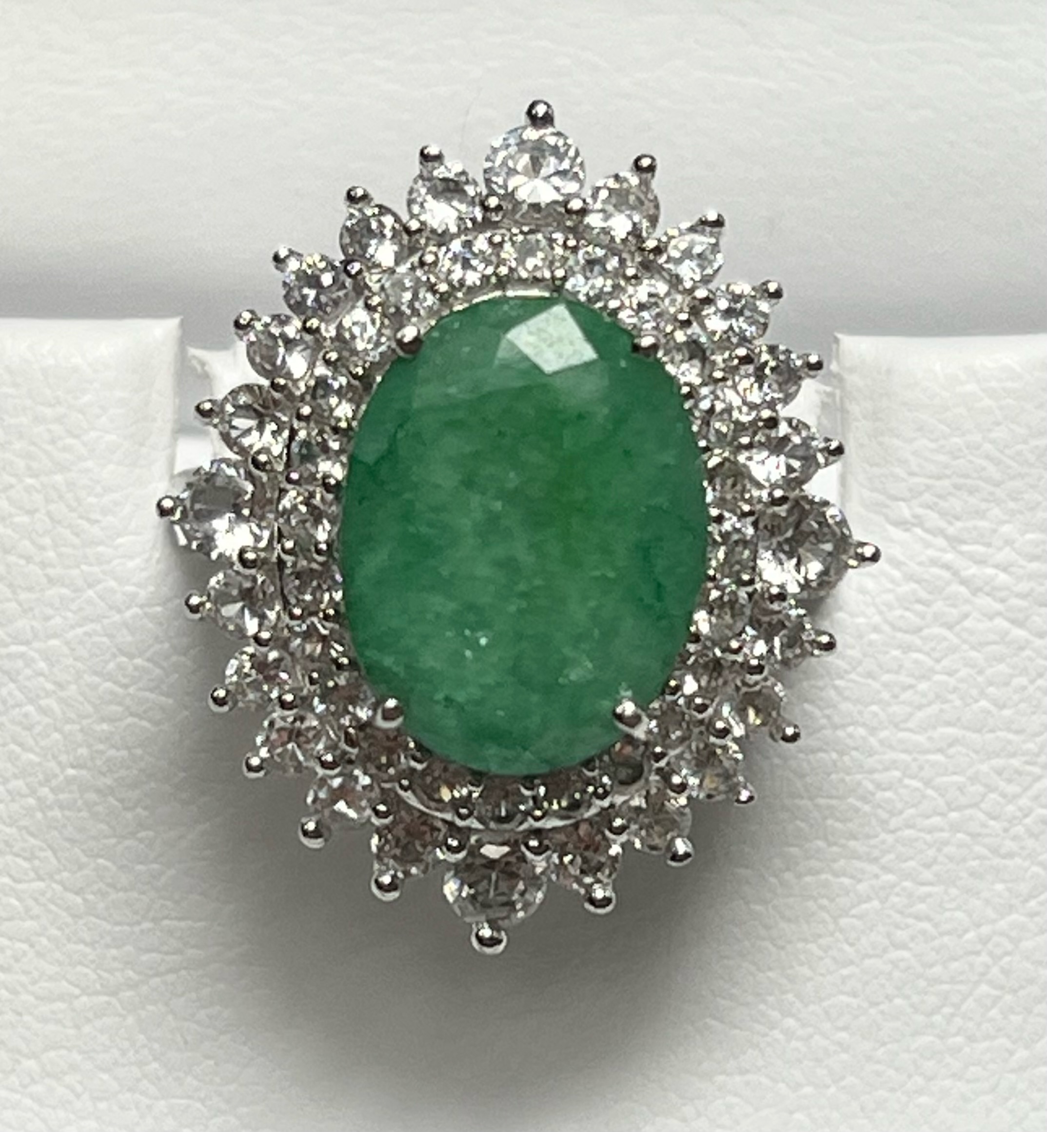 EMERALD AND WHITE SAPPHIRE RING SET IN STERLING SILVER