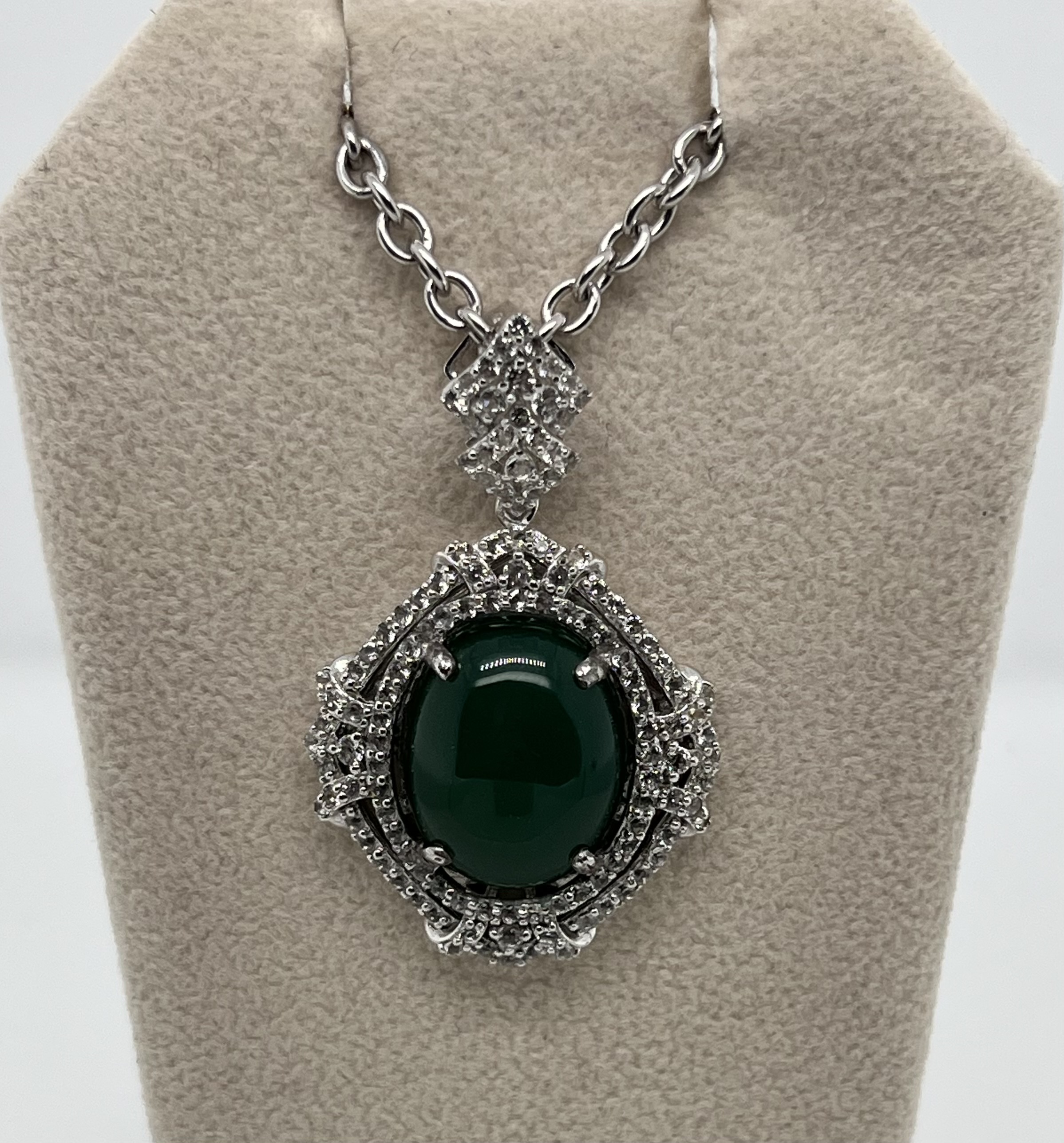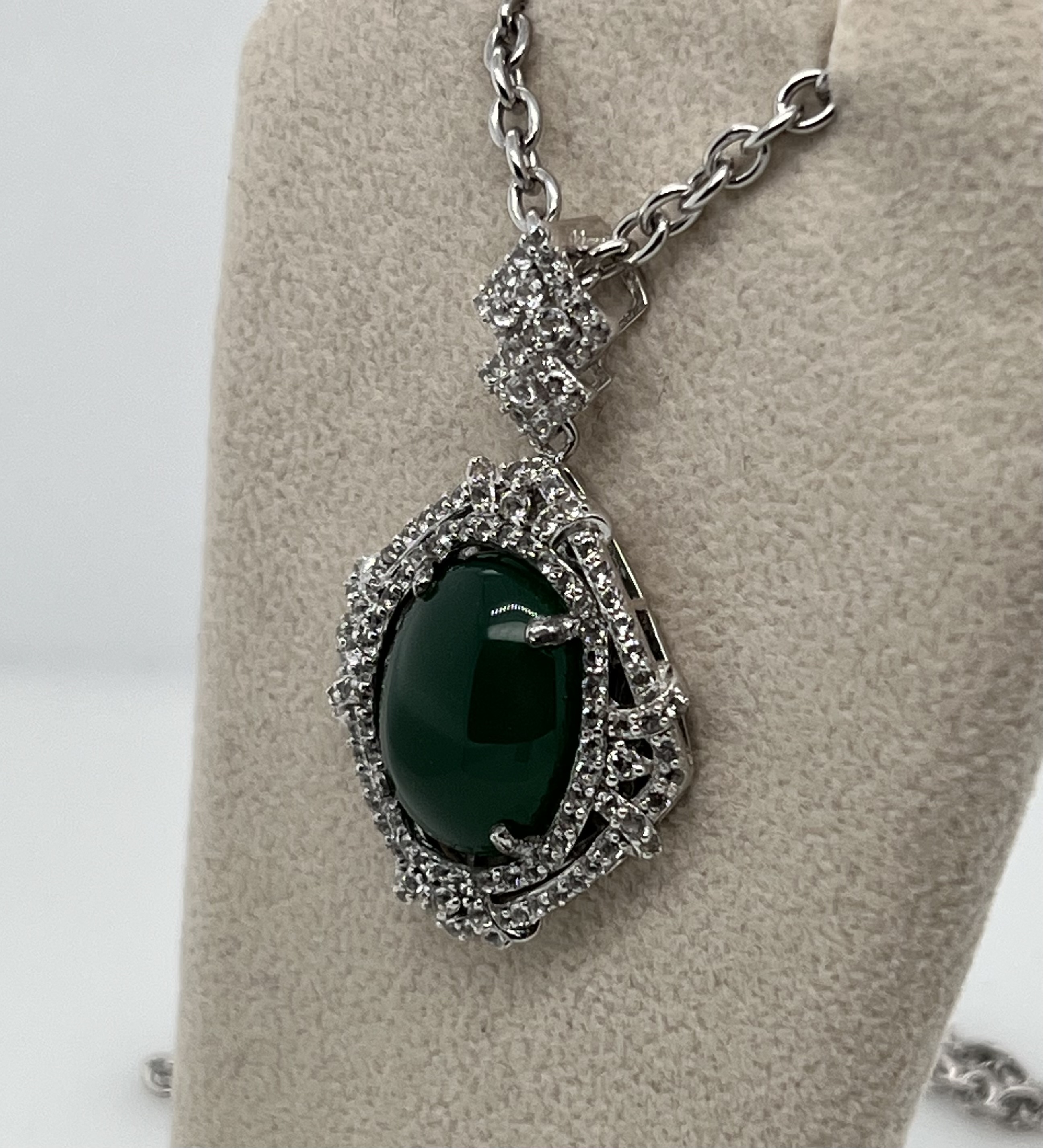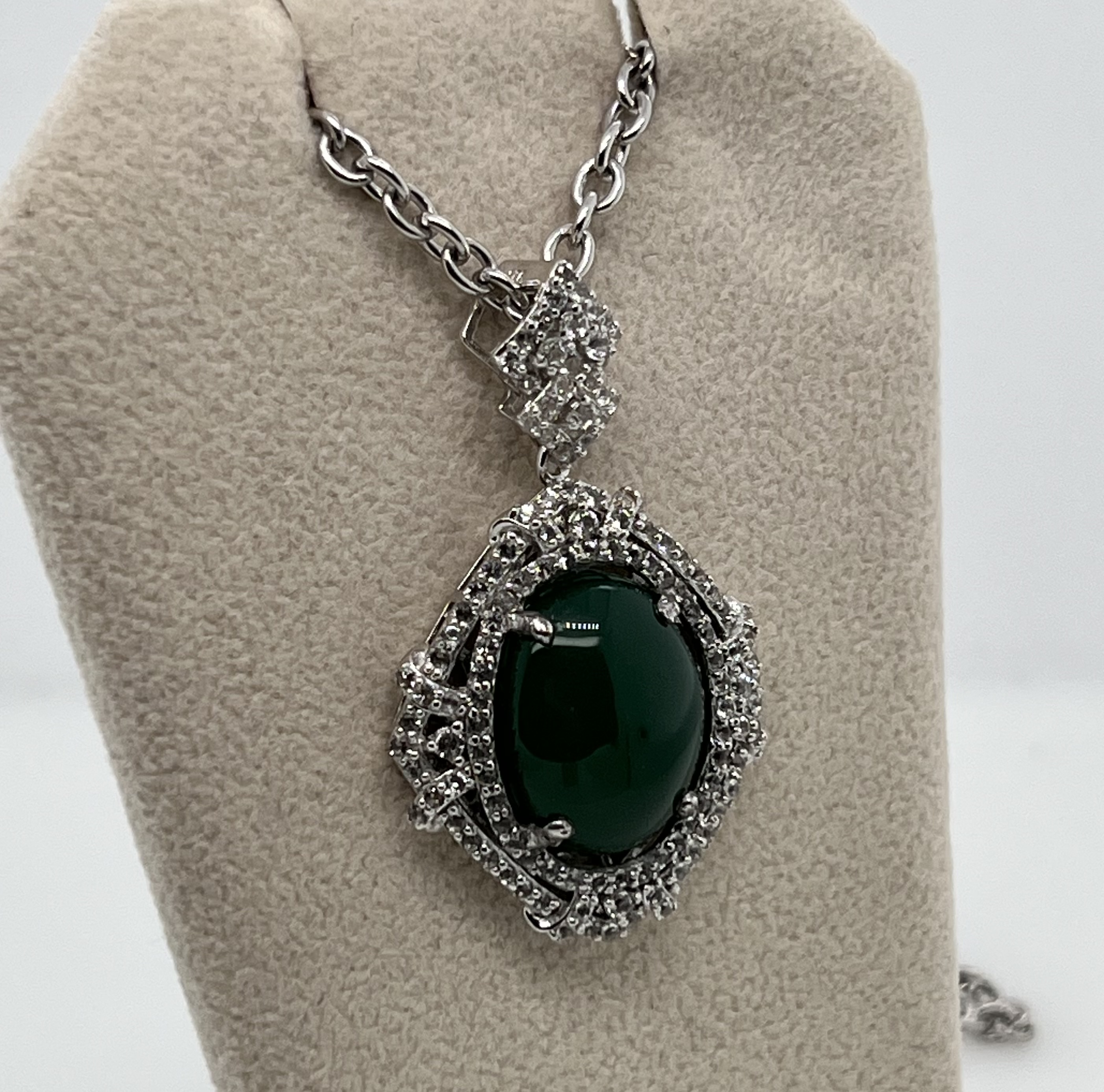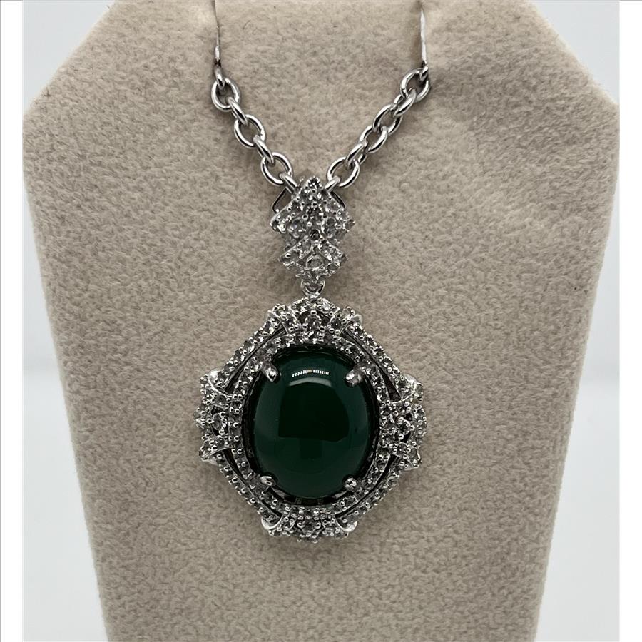 EMERALD & WHITE SAPPHIRE NECKLACE IN STERLING SILVER