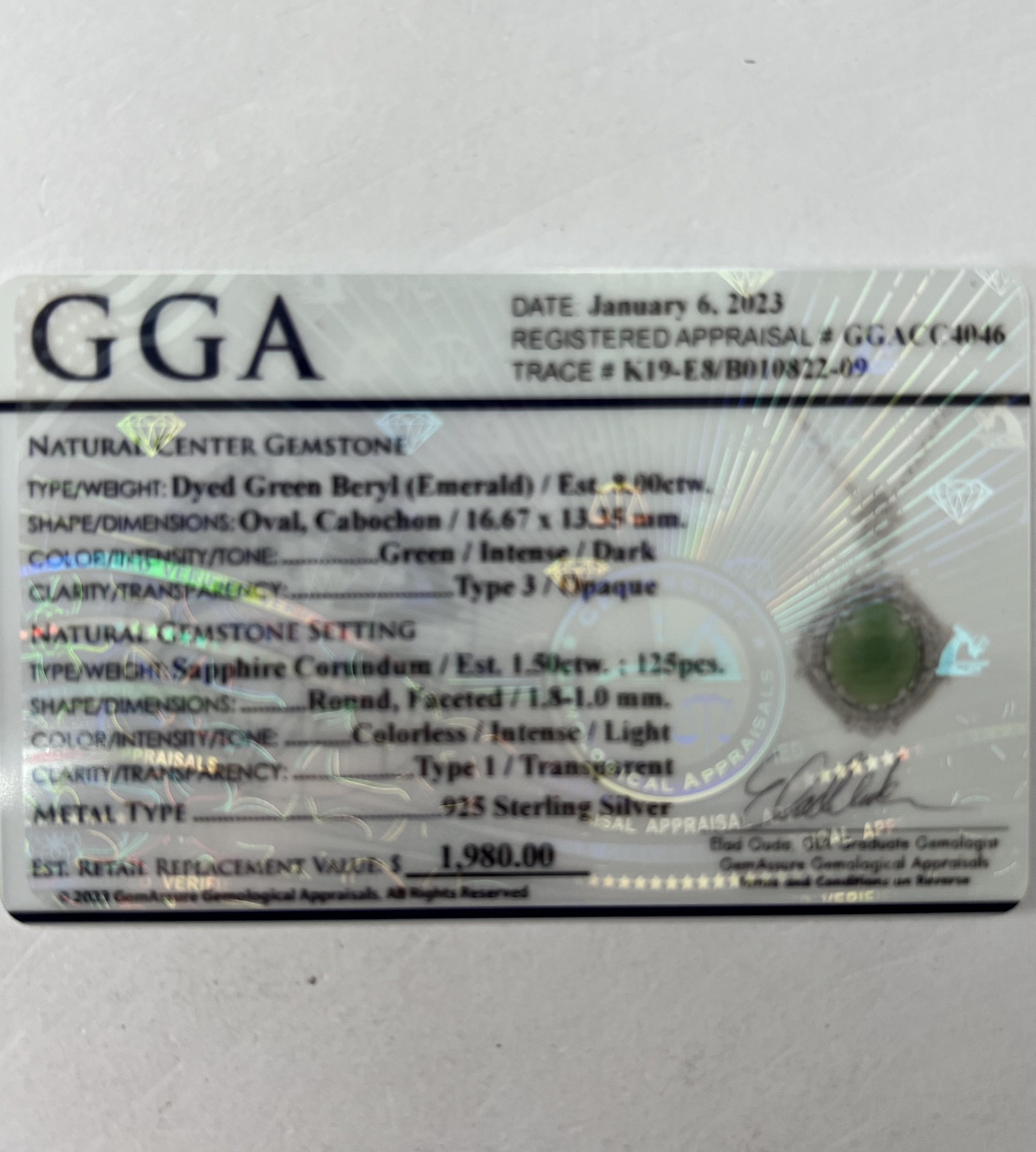 1 OVAL, CABOCHON EMERALD BERYL WEIGHING APPROX. 8.00CTS