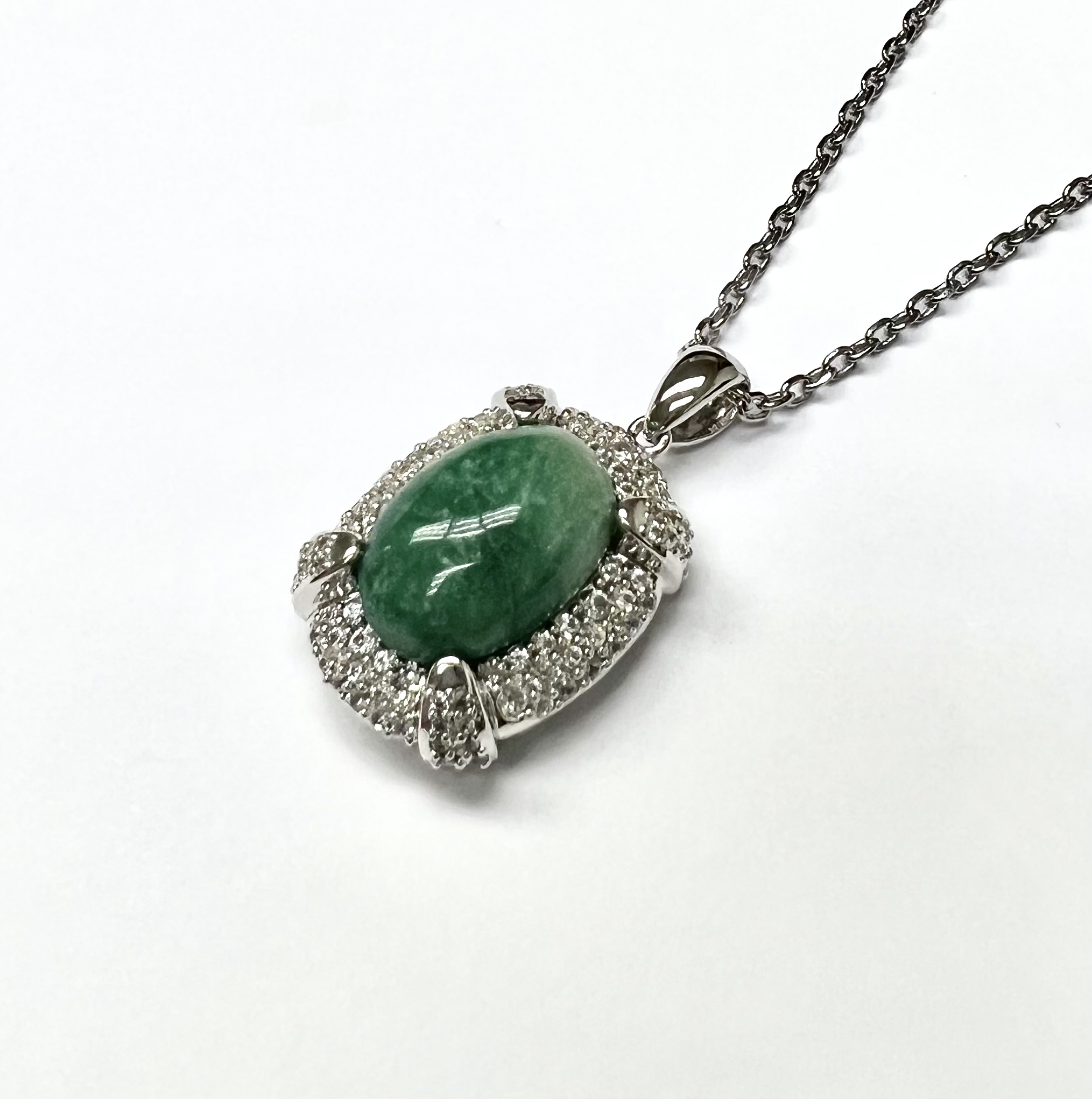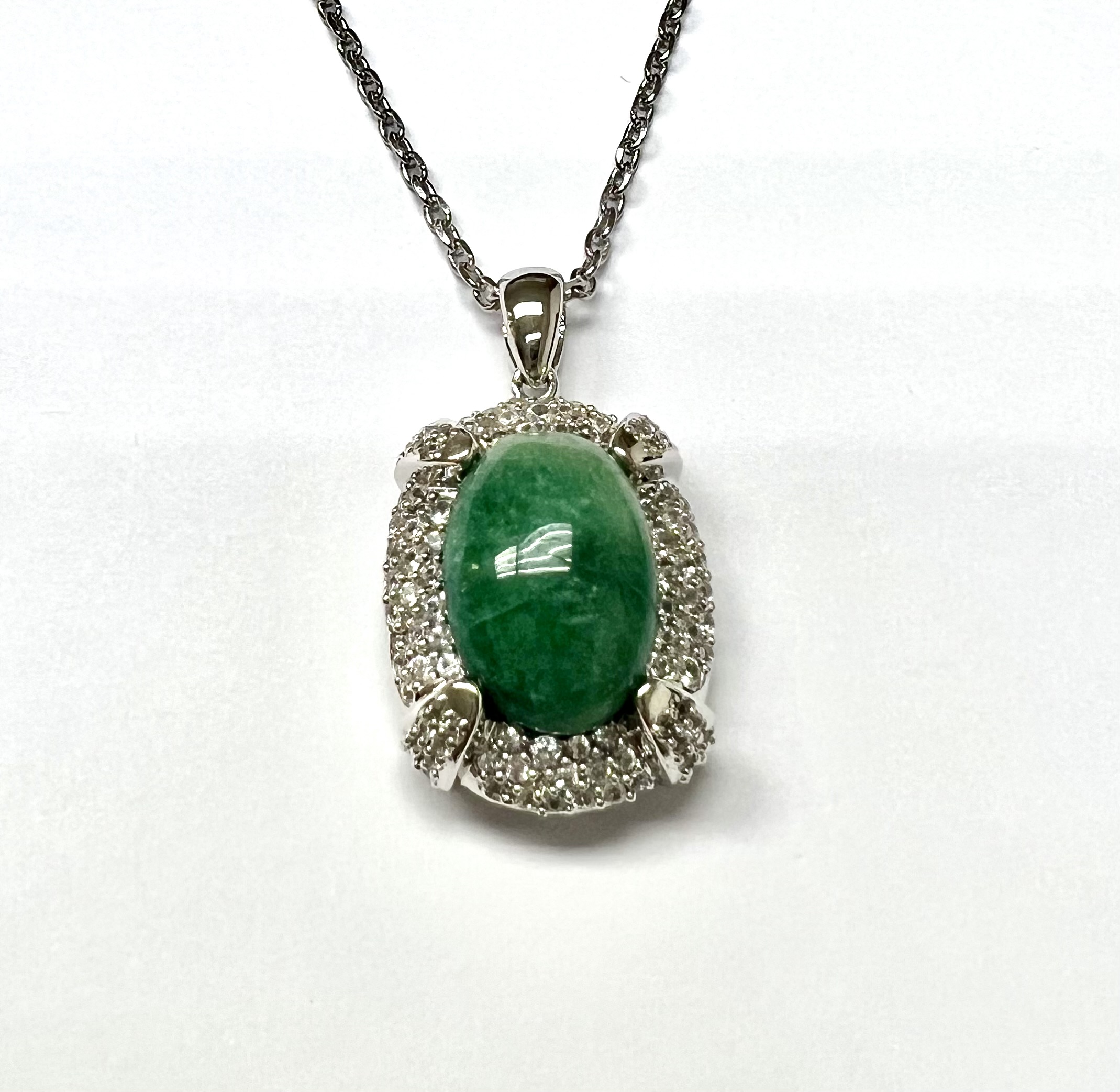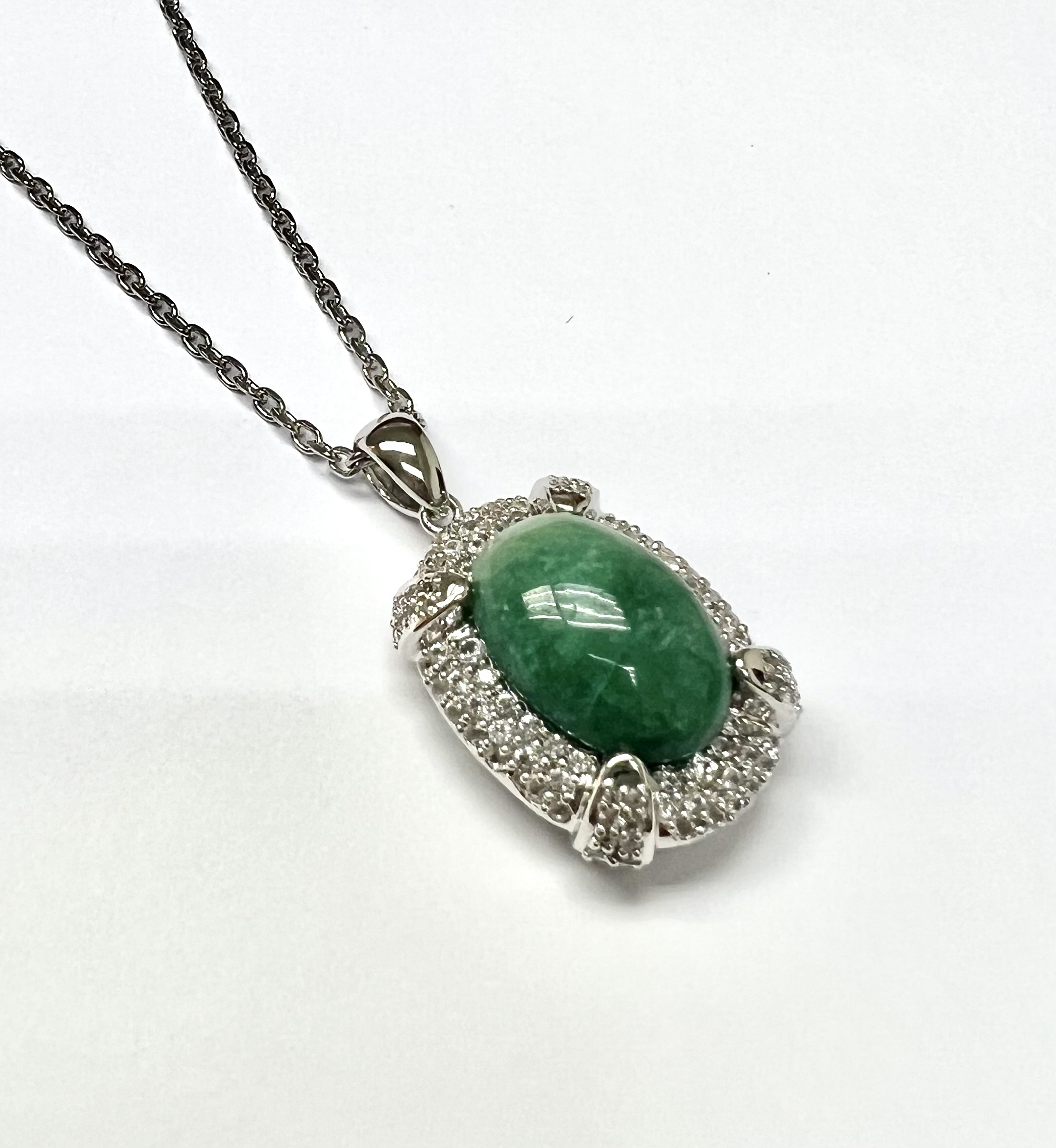 STUNNING EMERALD AND WHITE SAPPHIRE PENDANT AND CHAIN SET IN STERLING SILVER