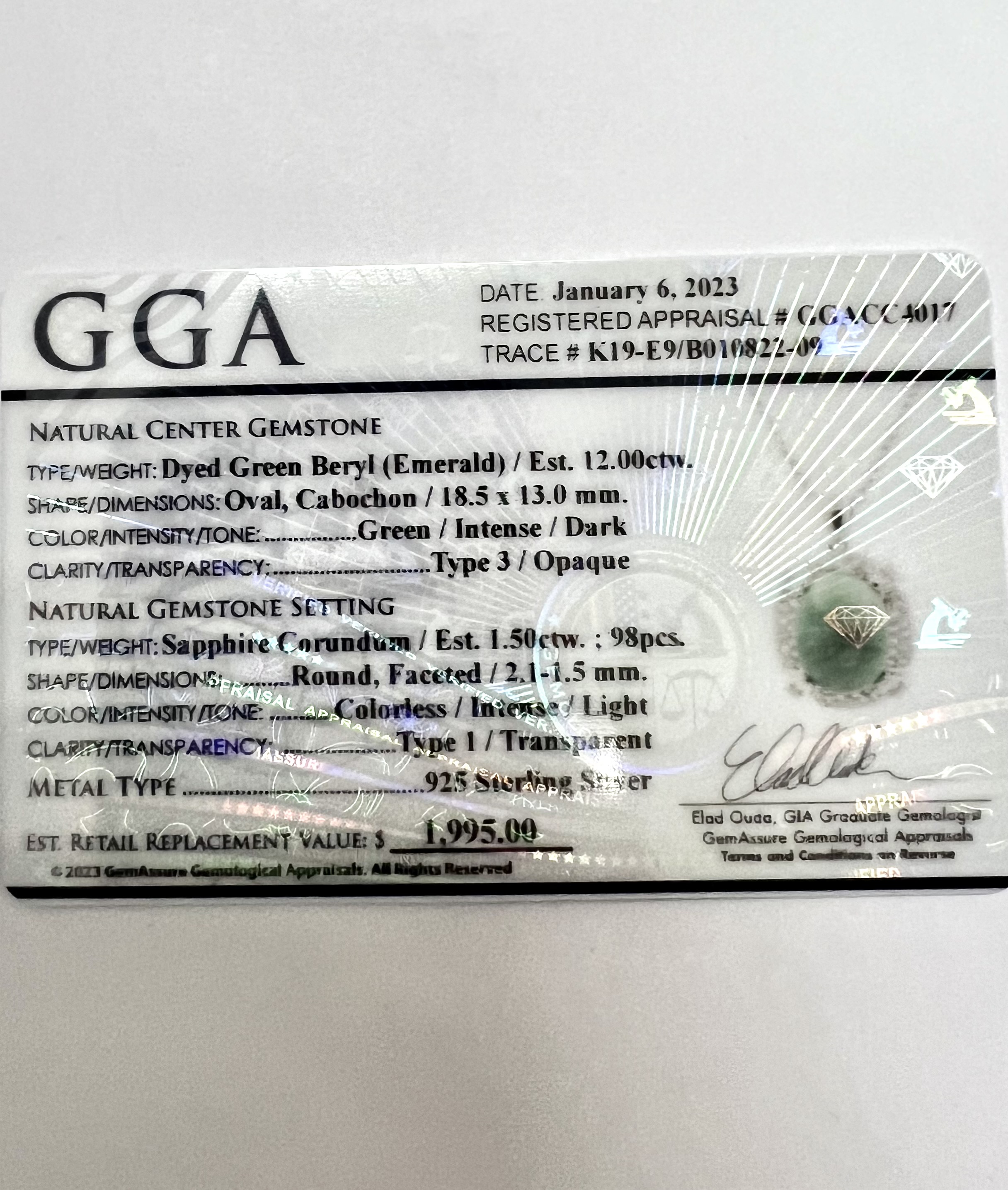 1 OVAL, CABOCHON EMERALD WEIGHING APPROX. 12.00cts