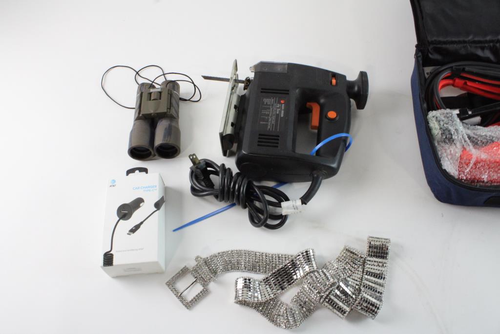 Get a great deal with this online auction presented by PropertyRoom.com on behalf of a law enforcement or public agency client. - Brand: Bushnell Binocular, Black& Decker Jig Saw, AT&T Car Charger,