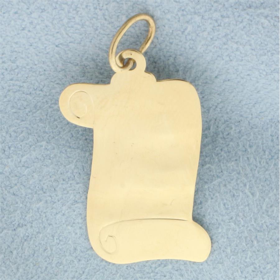 In 14k Yellow Gold. 1 1/8 inch long, 1/2 inch wide. Can engrave on front or back. 1.4g.