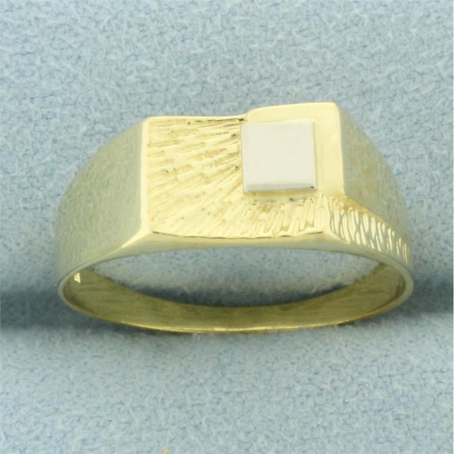 Engravable Two Tone Signet Ring in 18k Yellow Gold