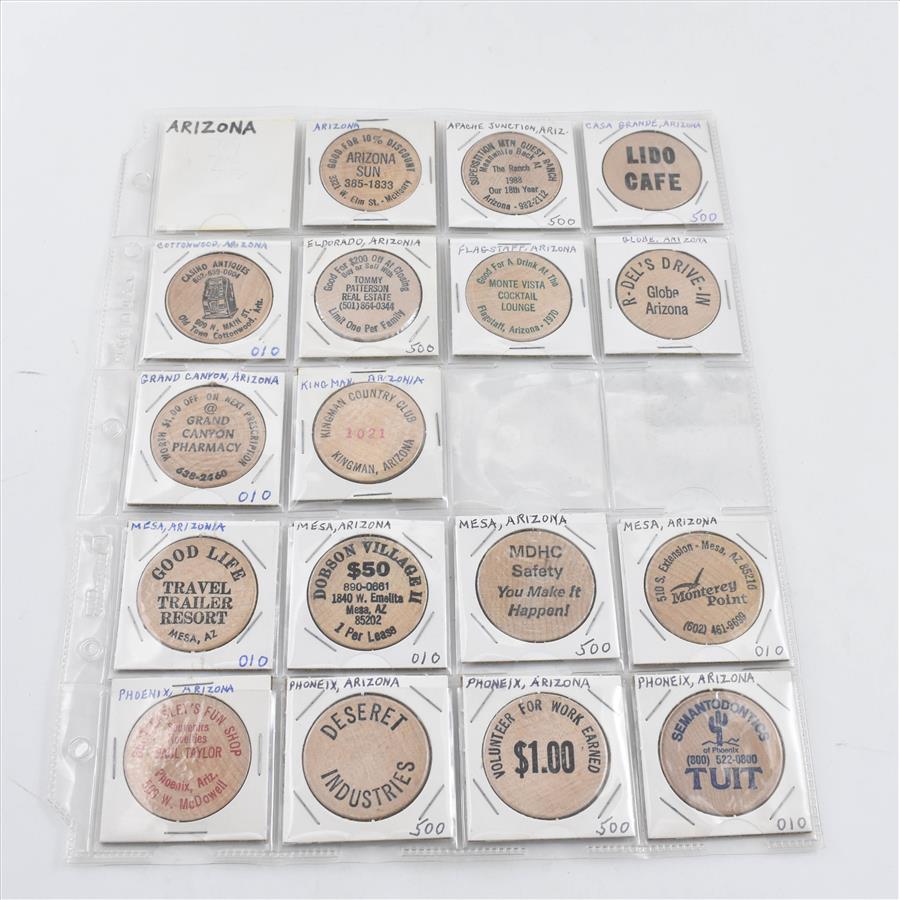 Entire Page Vintage WOODEN Nickels - Rare to find a group this large