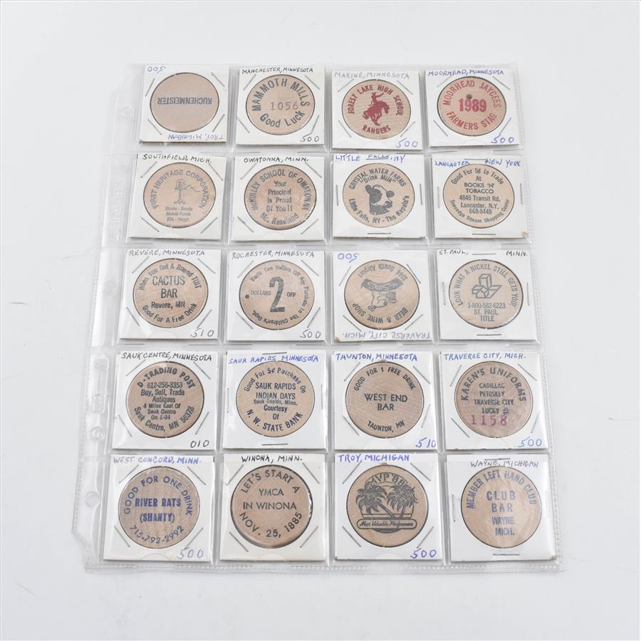 Entire Page Vintage WOODEN Nickels - Rare to find a group this large