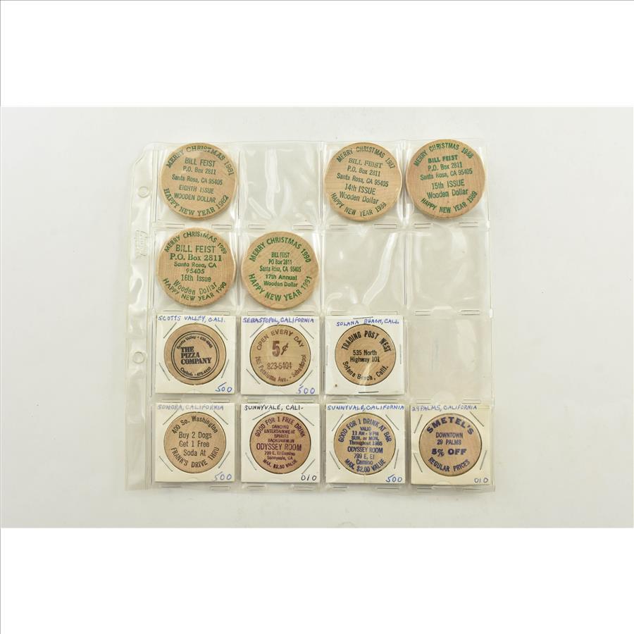 Entire Page Vintage WOODEN Nickels - Rare to find a group this large