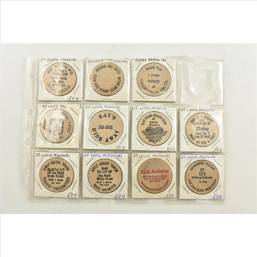 Entire Page Vintage WOODEN Nickels - Rare to find a group this large