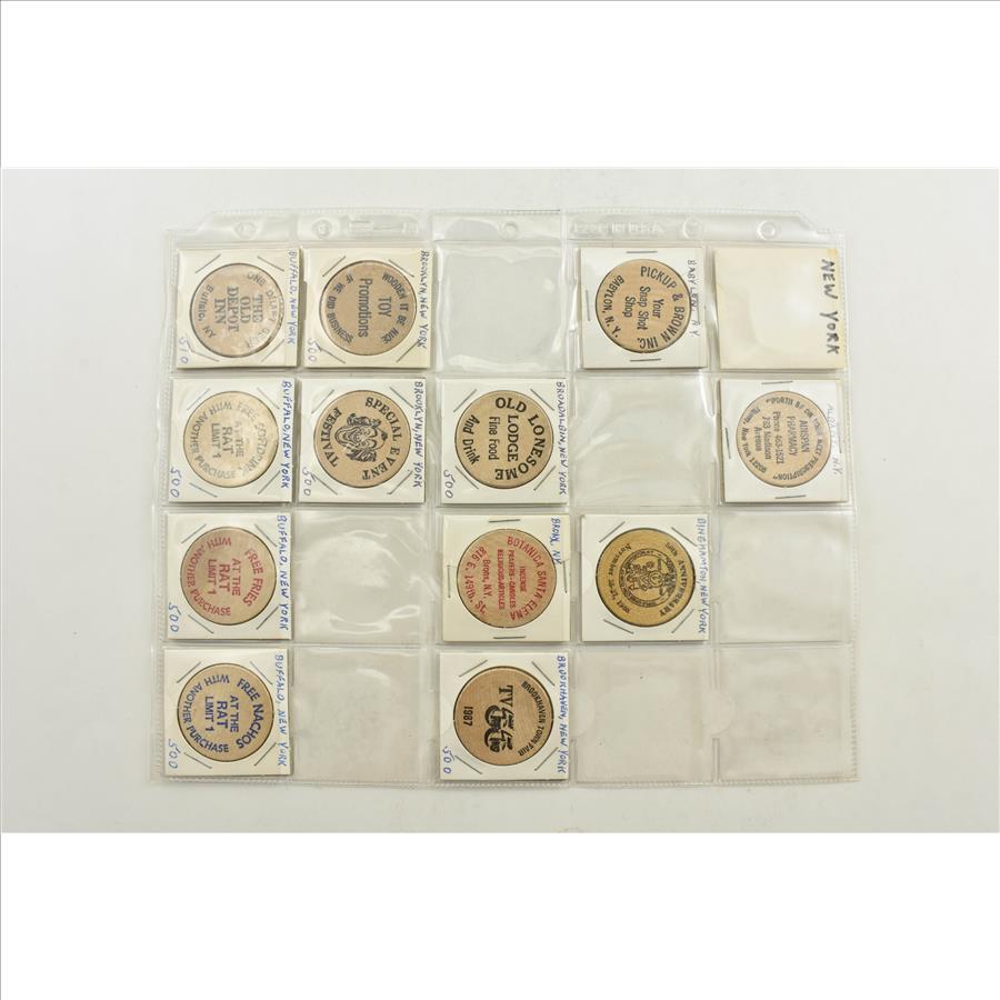 Entire Page Vintage WOODEN Nickels - Rare to find a group this large