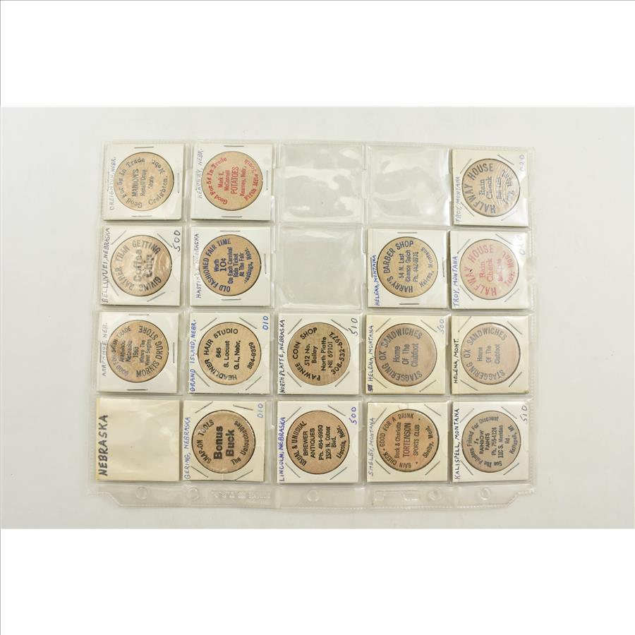 Entire Page Vintage WOODEN Nickels - Rare to find a group this large