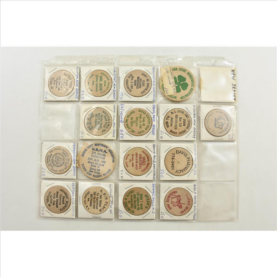 Entire Page Vintage WOODEN Nickels - Rare to find a group this large