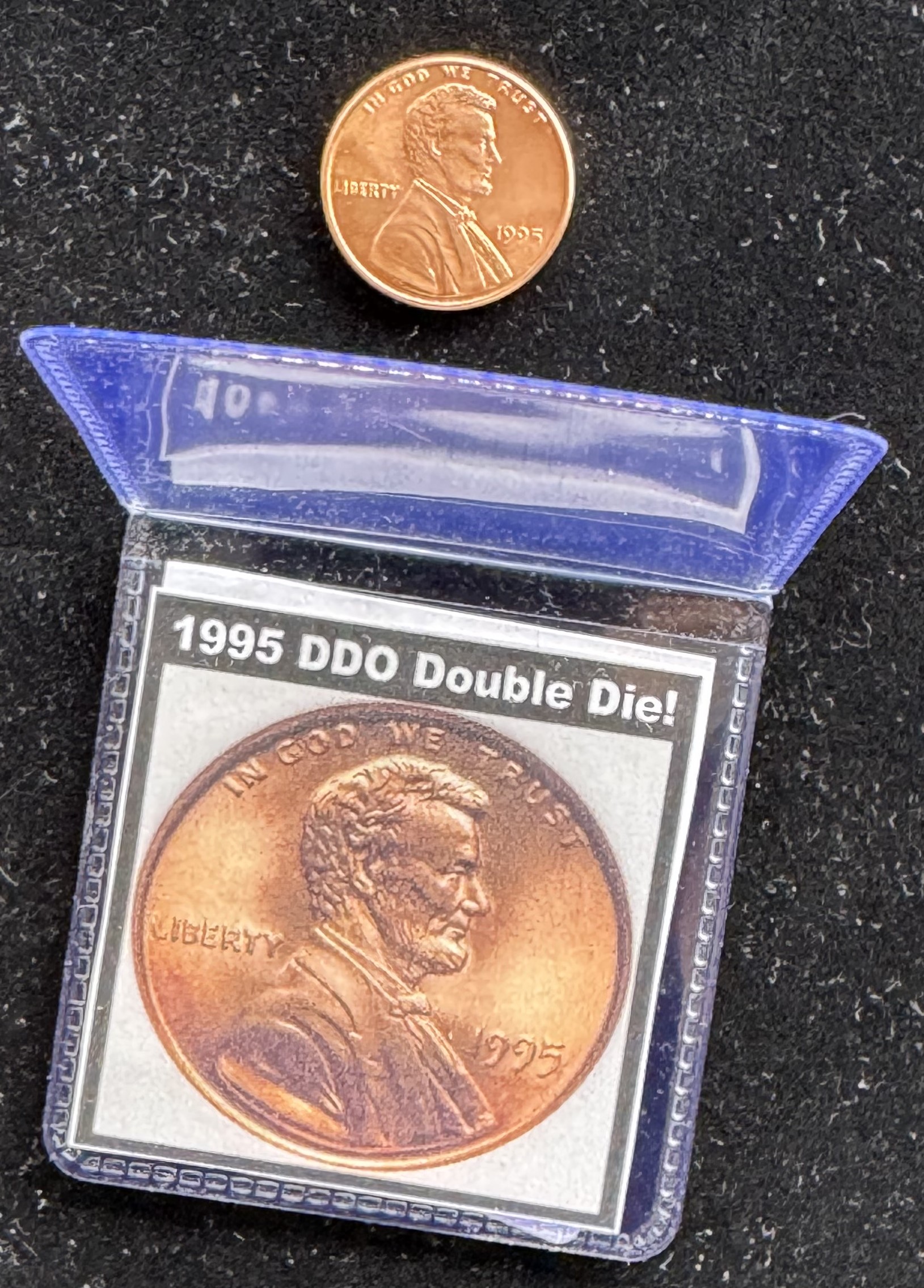 ERROR COIN, 1995 DDO DOUBLE DIE LINCOLN PENNY, GRADE BU GEM WITH COA