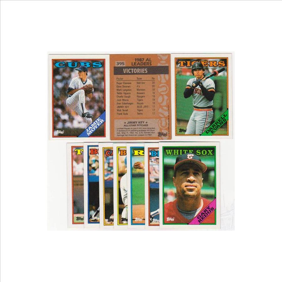 Collection of 10 assorted 1988 Topps baseball cards with the wrong backs printed on them.  Most of these are destroyed at the factory if this happens but these managed to get out in packs.  Most of these are nice Near Mint or better condition cards.  This is a very tough to find lot of these misprinted errors.  It includes: