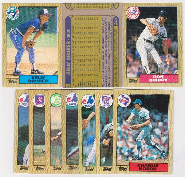 ERROR LOT - 10 Different 1987 Topps Baseball Wrong Back Errors - Ron Guidry + More