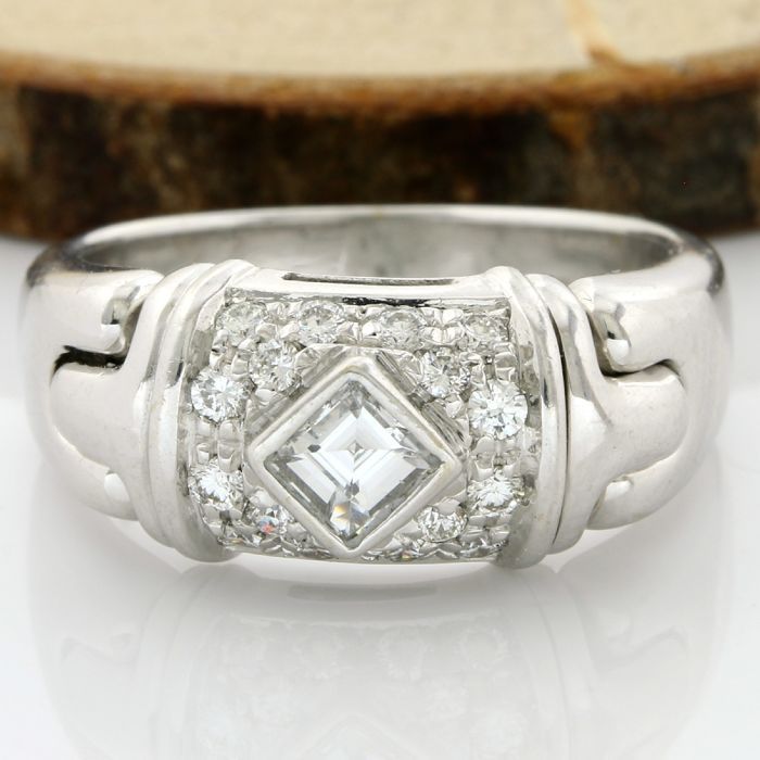 Estate Bvlgari - 18kt White Gold, 0.45 ct Round / Princess Cut Diamond Band / Ring