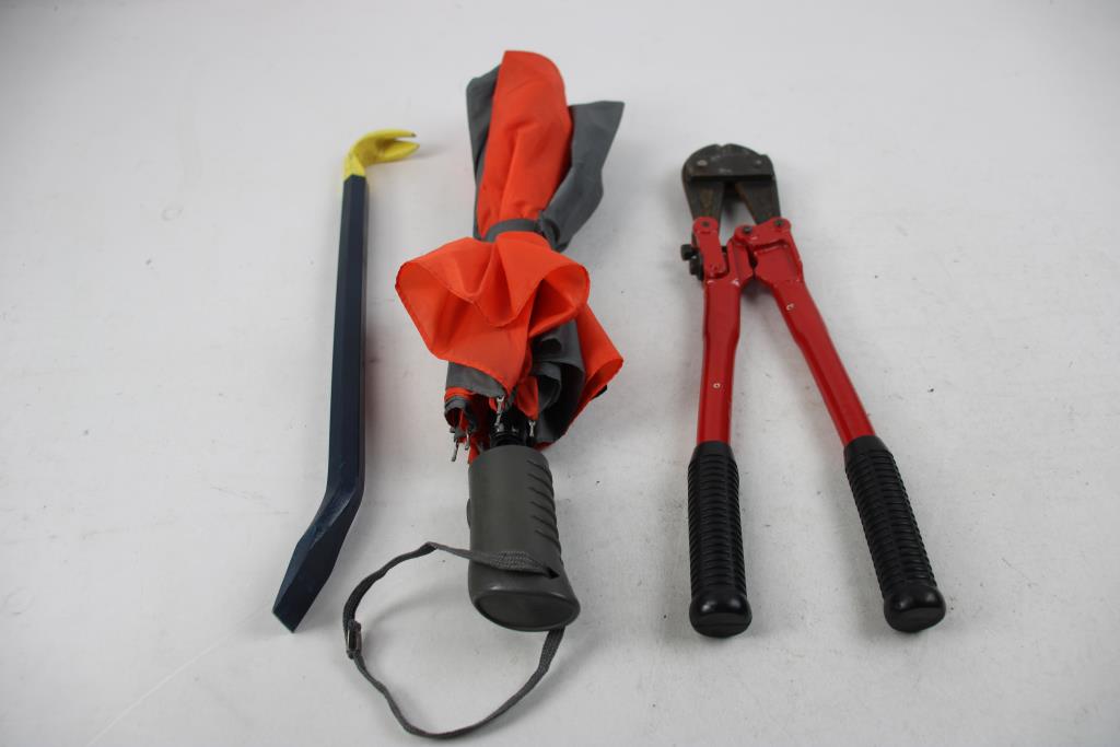 Estwing 15" Chisel/Nail Puller, 14" Bolt Cutters, Saw Blades, Knife, And Umbrella, 6 Pieces