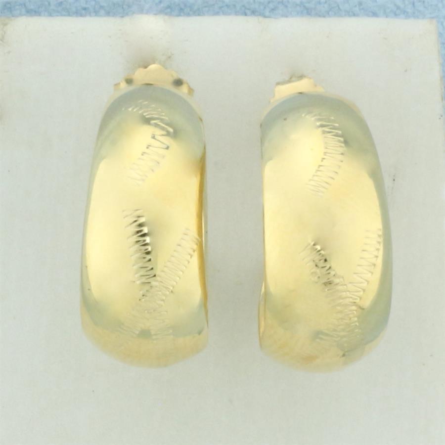 Etched Design Hoop Earrings in 14k Yellow Gold